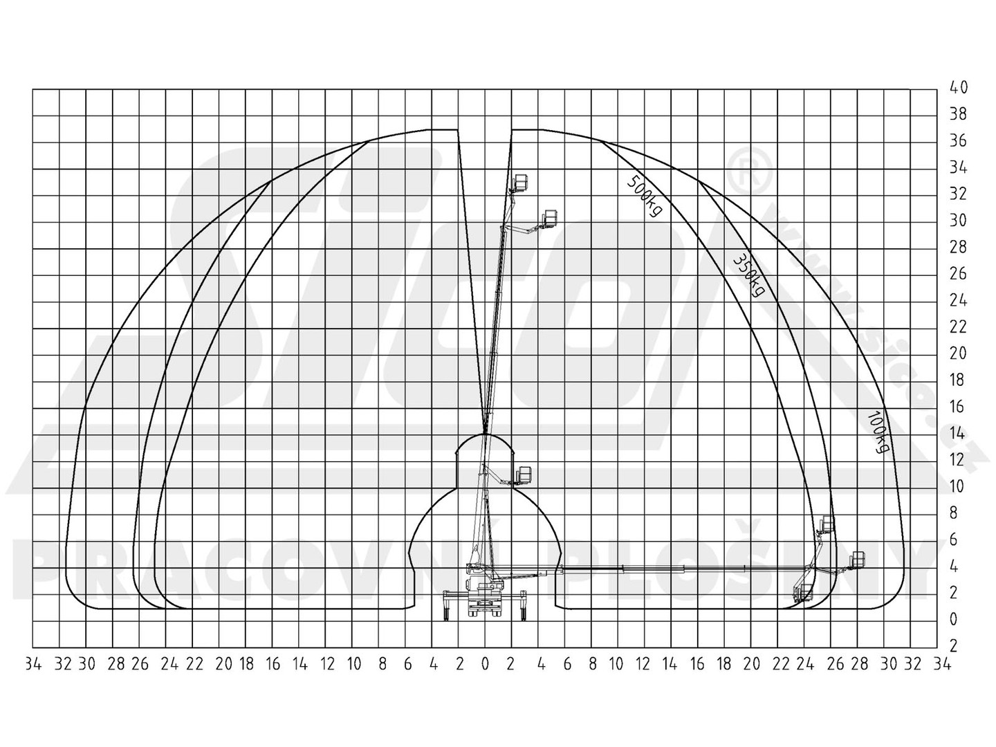 Stranový dosah až 33 metrů! Ve výbavě generátor el. proudu, příslušenství pro prořez zeleně a mnohem více! Palfinger P370KS má perfektní průchodnost terénem.