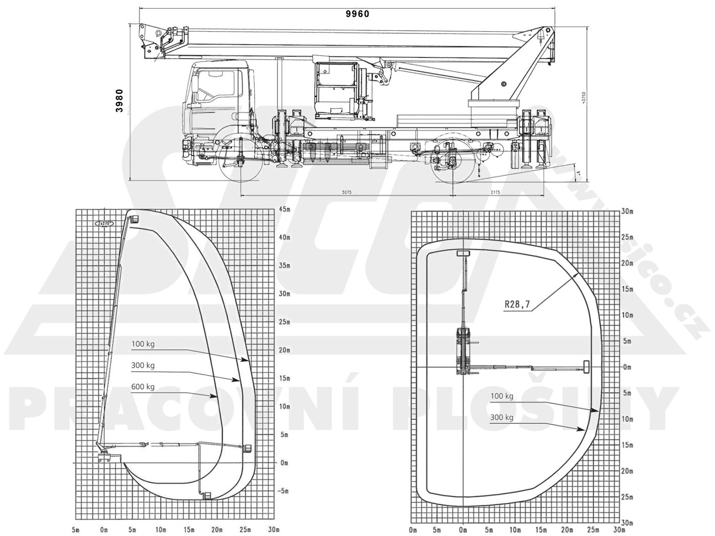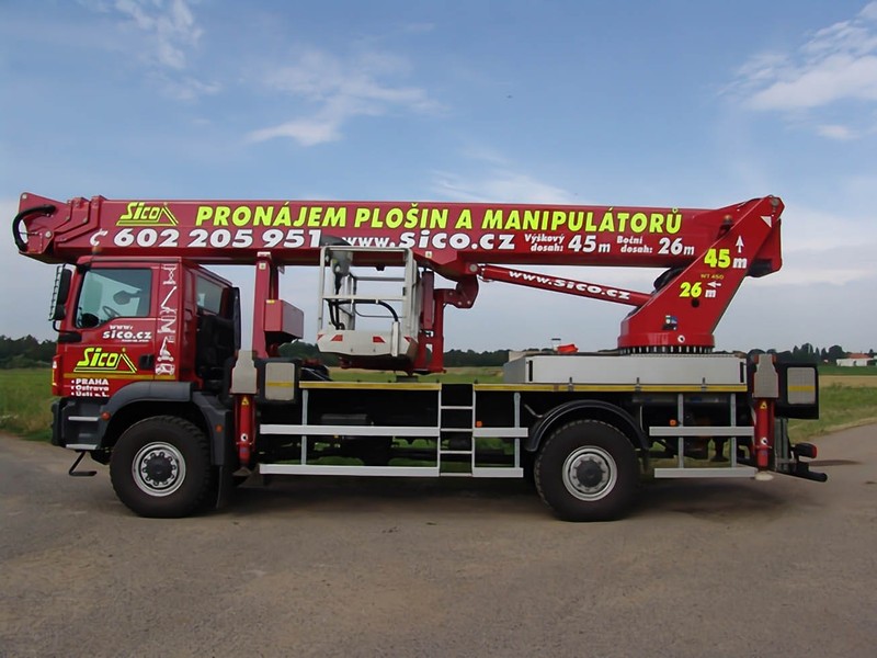 Konstrukce dvou teleskopických ramen - první 4 sekční a druhé 2 sekční, umožní ve výšce až 35 metrů stranový dosah více než 20 metrů (při zatížení koše 100kg z celkových možných 600 kg). Pohon 4x4 a robustní podvozek s dobrými nájezdovými úhly umožňuje stroji pohyb v terénu a 4 opěry zajistí potřebnou stabilitu při práci. Nástavba Wumag WT450 je konstruována tak, aby dovolila dosah 6 metrů pod úroveň podvozku. WT450 je tedy možné použít na inspekci menších mostních konstrukcí. Při využití bočního dosahu pouze do jedné strany je možné plošinu usadit na 2 vysunuté a 2 zasunuté podpěry a tím tak zmenšit prostor nutný pro ustavený stroj přibližně o 2 metry. Pracovní koš je možné dovybavit držáky deskového materiálu s nosností 350 kg. Autoplošina splňuje přísné bezpečností předpisy a mezinárodní normy. Podmínky pronájmu, doporučení k používání, informace ke školení a výpis zakázané manipulace najdete zde.