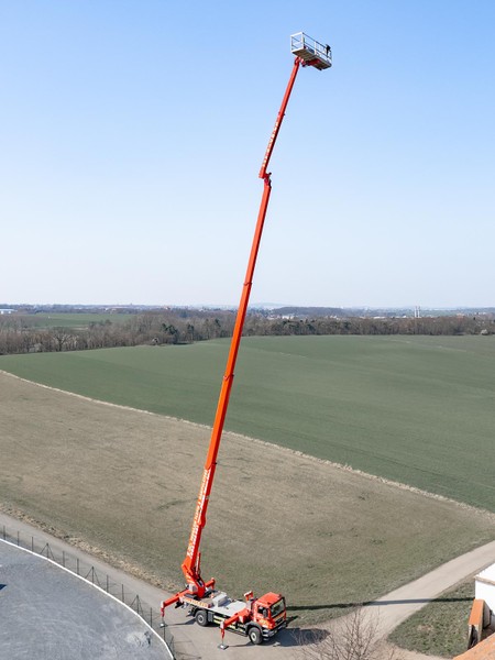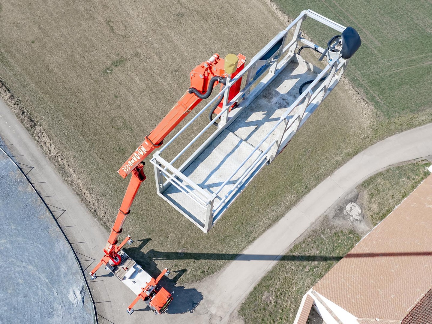 Pracovní výška 45 metrů, stranový dosah až 26 metrů, nosnost koše 600 kilogramů a dokonce i negativní dosah 6 metrů pod úroveň podvozku, to je naše WT450!