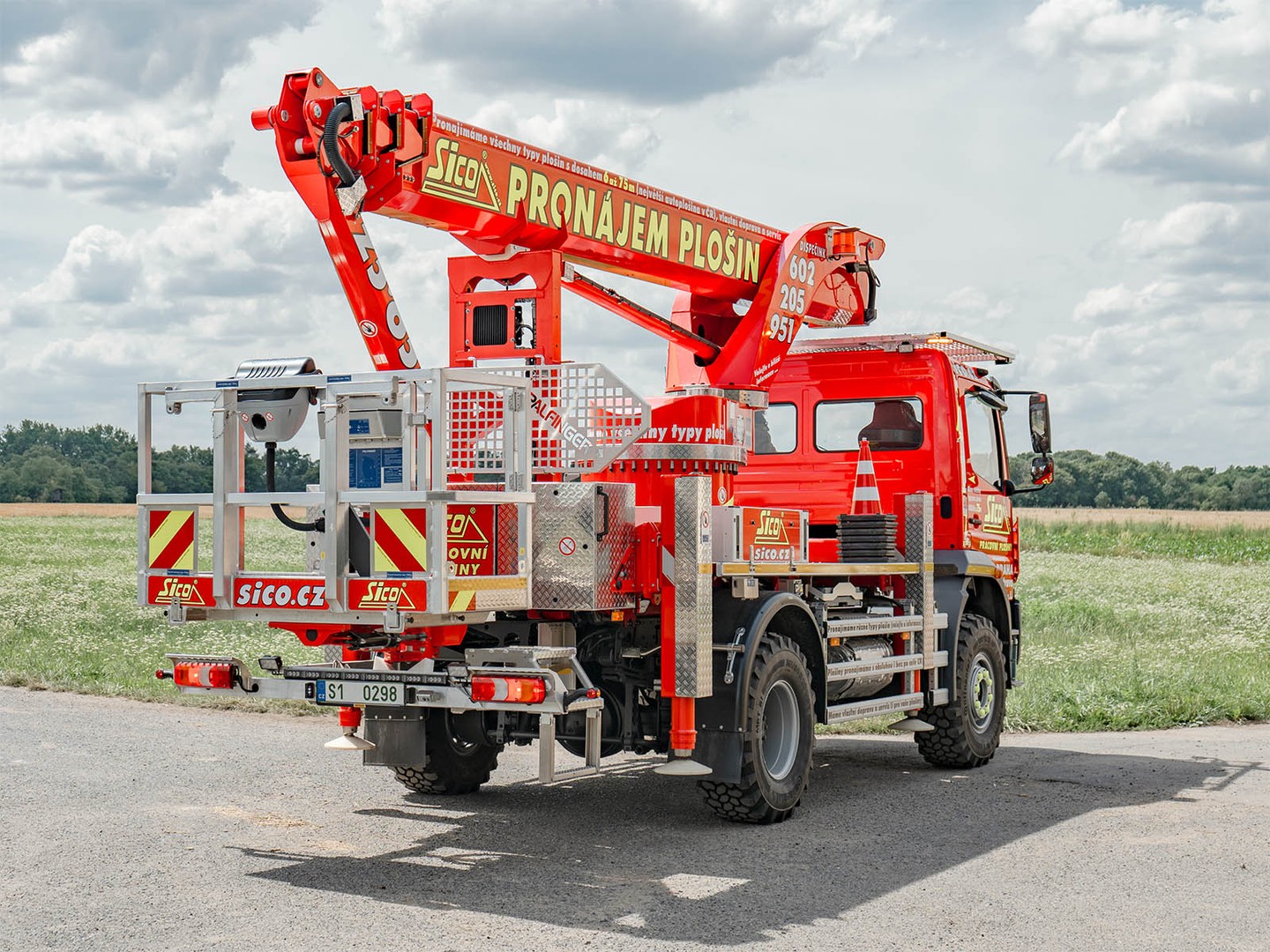 Kompaktní rozměry, perfektní manévrovatelnost a k tomu vysoká průchodnost terénem. Max. pracovní výška 30 m a stranový dosah až 20,5 m
