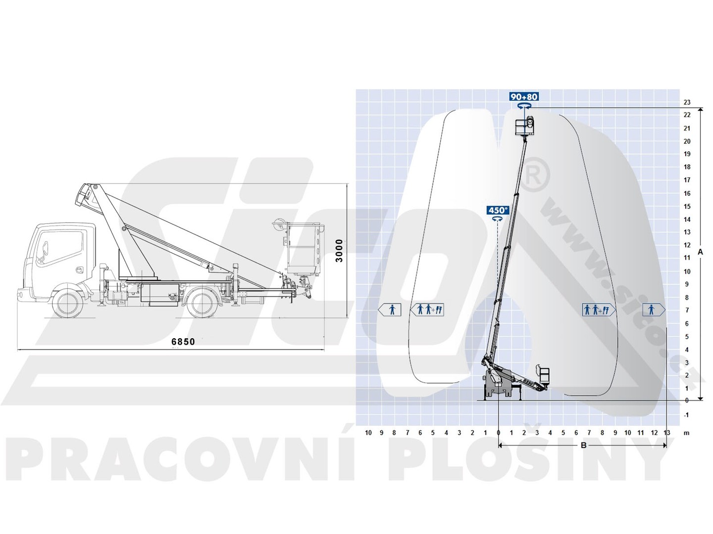 Maximální pracovní výška je 22,5 metru a stranový dosah činí 13,5 metru. Plně proporcionální ovládání zajistí, že se přesně a plynule dostanete do potřebné pracovní pozice. B230T je stroj vhodný na výškové práce, při kterých je potřeba častého přemisťování plošiny, které v tomto případě zabere minimum času. Při využití bočního dosahu pouze do jedné strany je možné plošinu usadit na 2 vysunuté a 2 zasunuté podpěry a tím tak zmenšit prostor nutný pro ustavený stroj Autoplošina splňuje přísné bezpečností předpisy a mezinárodní normy. Podmínky pronájmu, doporučení k používání, informace ke školení a výpis zakázané manipulace najdete zde.