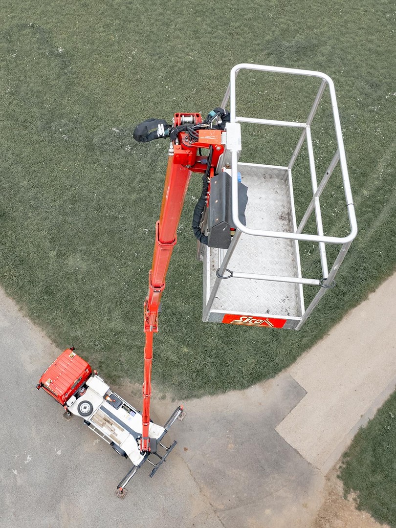 Kloubovo-teleskopická konstrukce umožní maximální stranový dosah 12 metrů ve výšce 14 metrů. Při využití bočního dosahu pouze do jedné strany je možné vysunout opěry pouze na téže straně a snížit tak nároky na prostor pro ustavení stroje téměř na 3,1 metru na šířku. Negativní dosah 5 metrů dovolí práce pod úrovní terénu - třeba na malých mostních konstrukcích. DT25 umožňuje nahradit pracovní koš jeřábovým hákem s nosností 260 kg. Podmínky pronájmu, doporučení k používání, informace ke školení a výpis zakázané manipulace najdete zde.