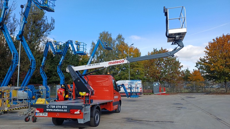 France Elévateur TOPY 10.2 na podvozku Mercedes-Benz Sprinter je kompaktní a obratná automobilová plošina, která umožňuje práci ve výškách až 10,5 m se stranovým dosahem 5,3 m. Koš má nosnost 200 kg a pojme až dvě osoby, přičemž díky stabilní konstrukci a intuitivnímu ovládání je možné stroj nasadit rychle a bez nutnosti podpěr. TOPY 10.2 je ideální pro údržbu osvětlení, reklamních ploch a elektroinstalací, stejně jako pro zásahy na střechách, fasádách či v těžko přístupných oblastech. Díky svým kompaktním rozměrům je vhodná i pro městské prostředí a stísněné prostory, kde je flexibilita a rychlost nasazení zásadní.
