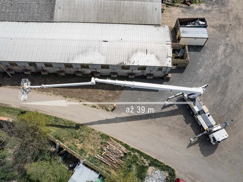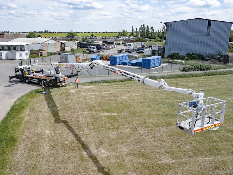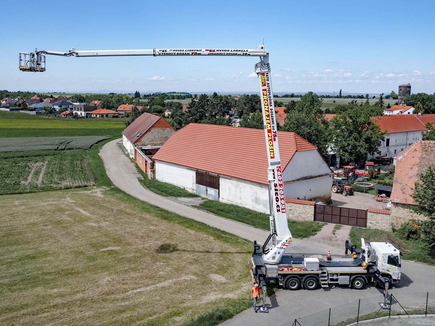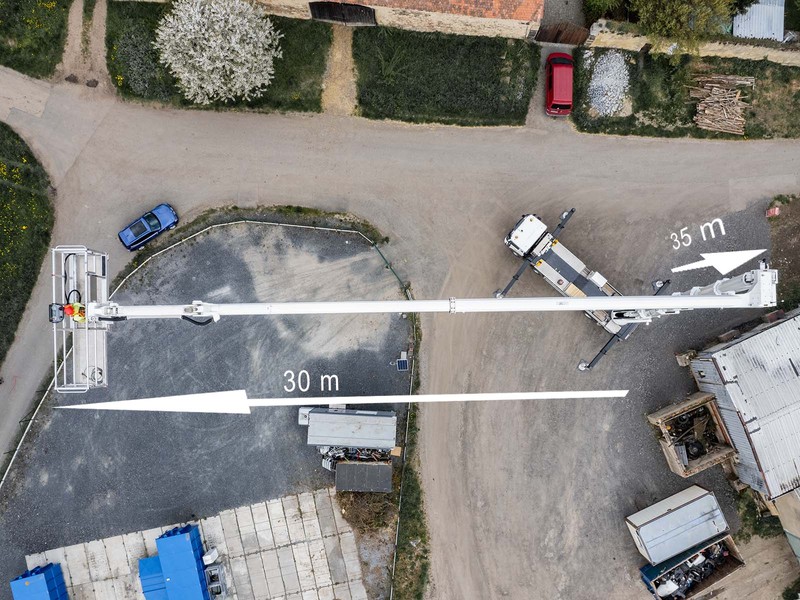 Nejvyšší model řady Jumbo class - Palfinger P750 - vám umožní práci až v 75 metrech. Konstrukce se dvěma teleskopy a jedinečným X-JIB ramenem umožní přístup do obtížně dostupných míst.