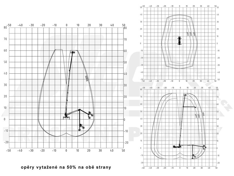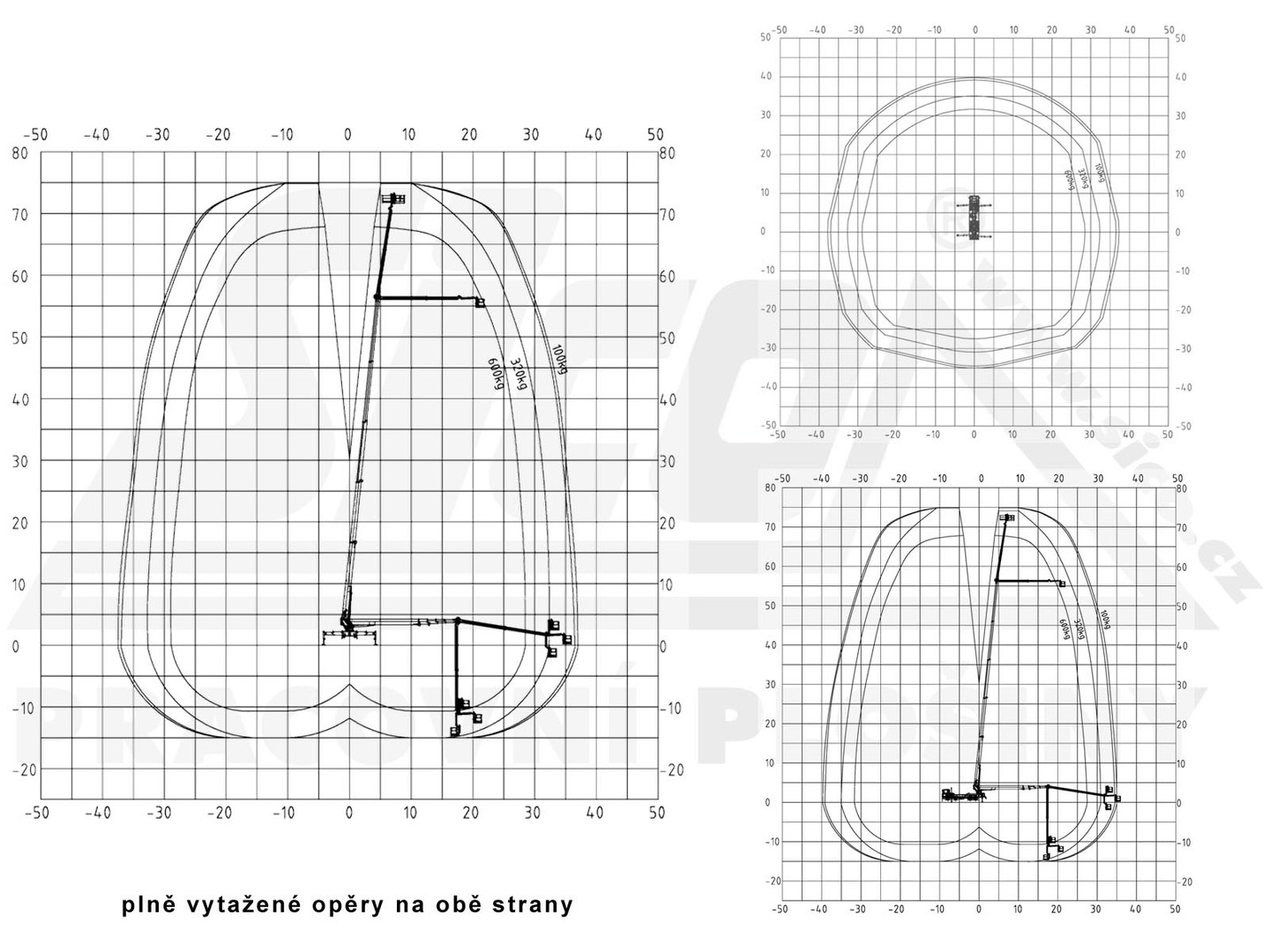 Maximální jistotu a bezpečí zaručí 4 opěry se širokou základnou ustavení a elektronické systémy neustále vyhodnocující všechny kritické parametry. P750 je možné, za předpokladu snížení hodnot dosahů a maximálního zatížení v koši, používat s opěrami vytaženými na polovinu své délky (případně tak, že kopírují půdorys vozu). Dojde tak v výraznému snížení nároků na prostor při ustavení.