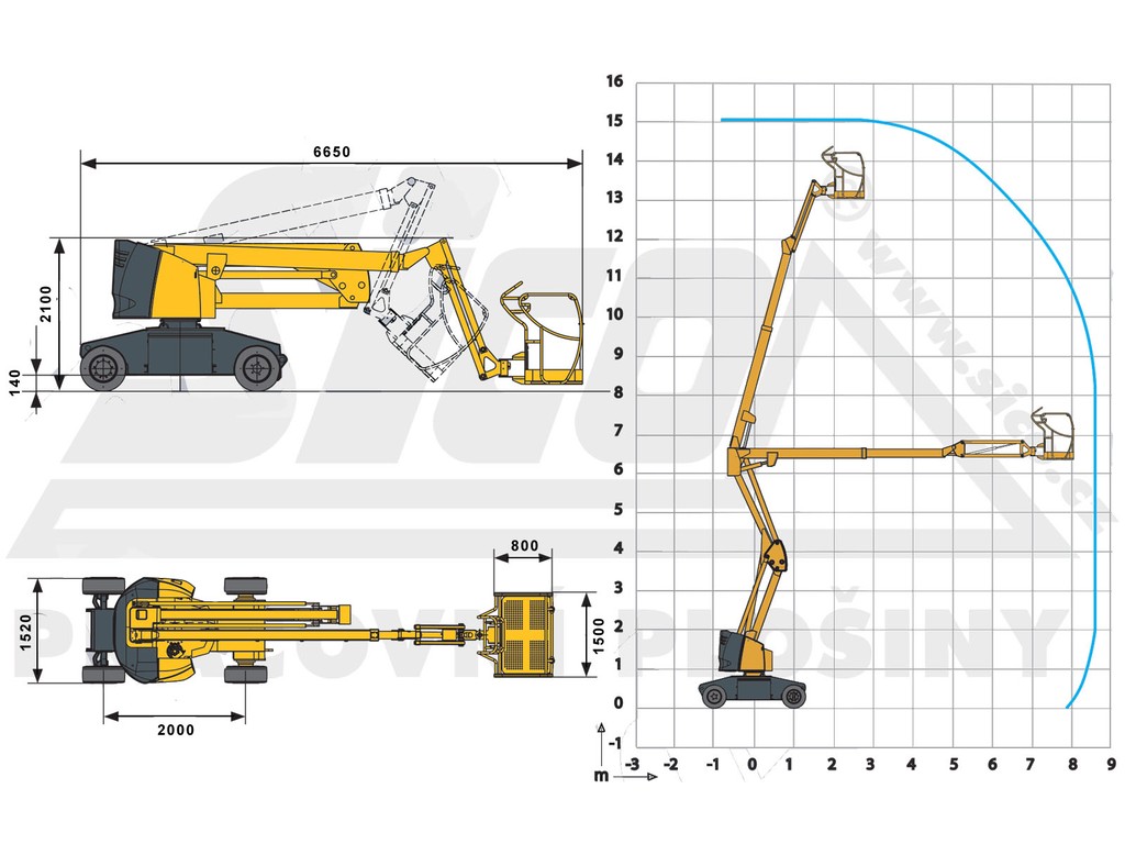 Robustní, spolehlivá a kompaktní pracovní plošina, která vydrží v provozu až 16 hodin, to je HA 15 IP+ s maximální pracovní výškou 15 metrů.