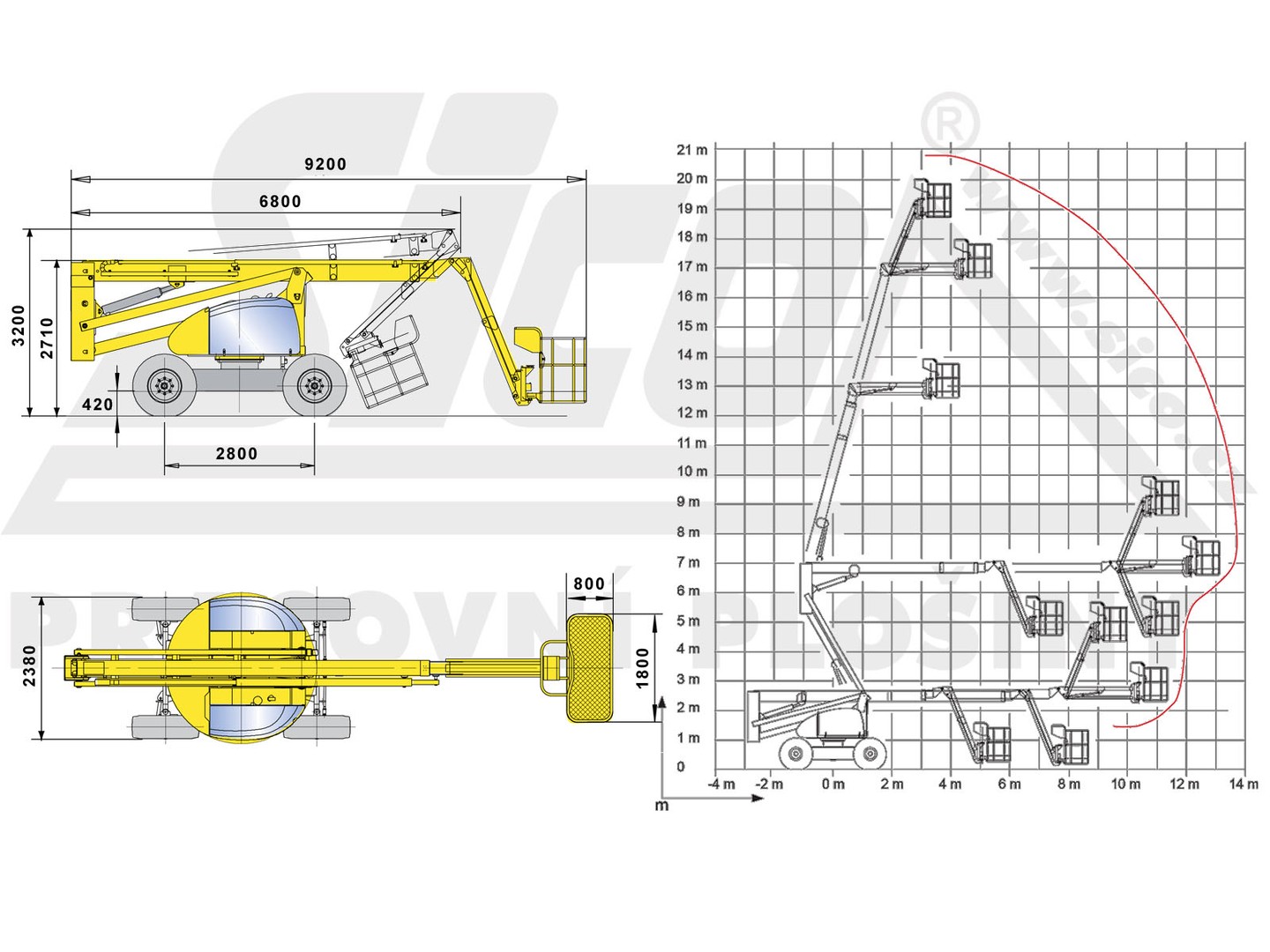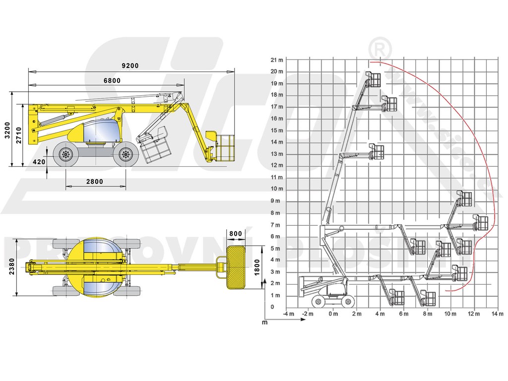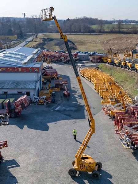 Pracovní výška až 20,65 metru, stranový dosah 14 metrů, pohon všech kol a zatáčecí obě nápravy. To je HA 20 PX.