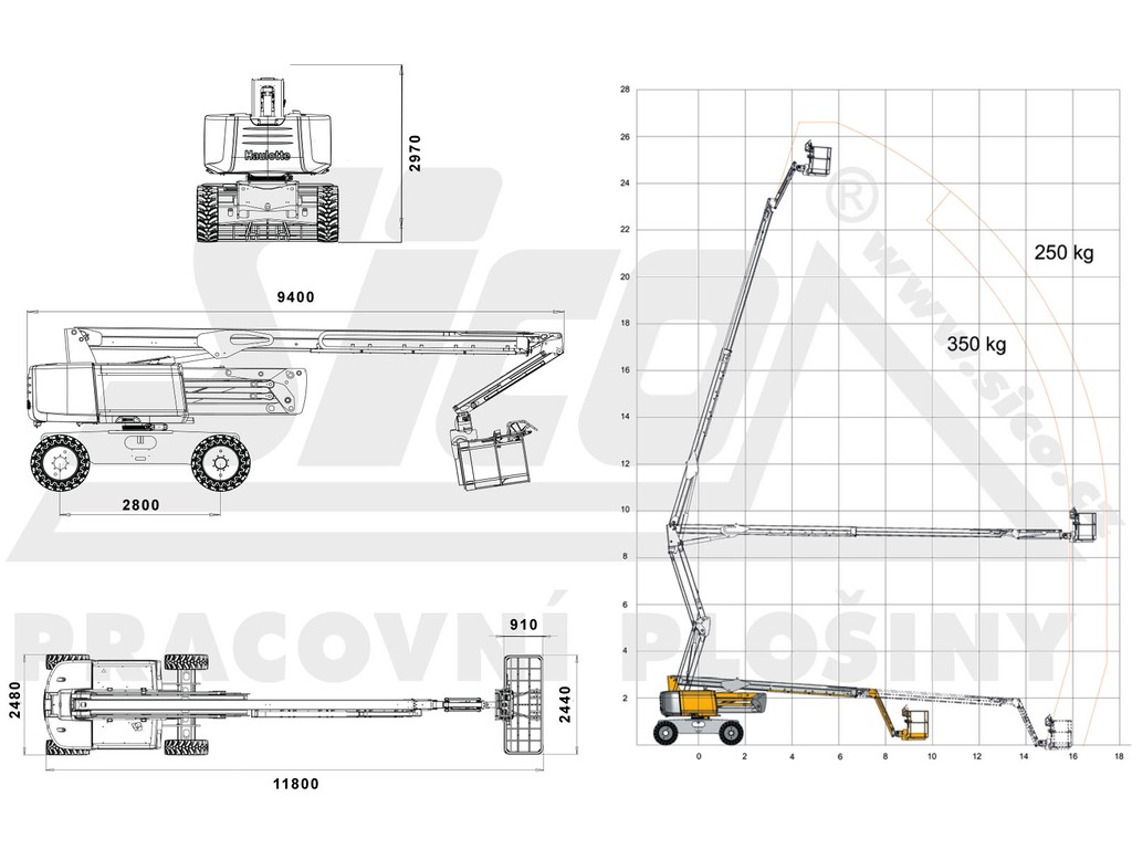 Plně vybavený stroj s pohonem 4x4, výkyvnou nápravou a zatáčením všech kol. Maximální pracovní výška 26,4 metru. Doporučujeme!