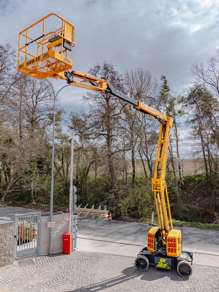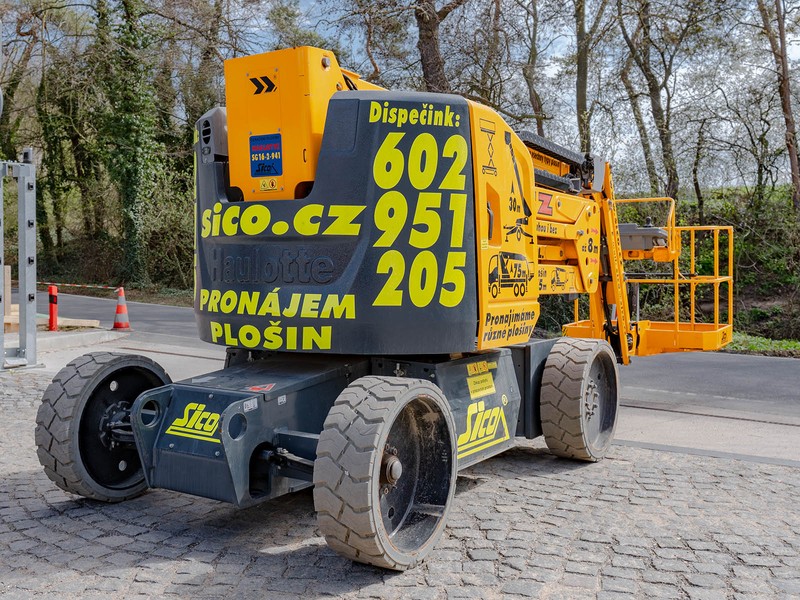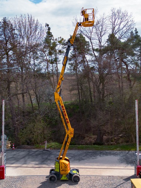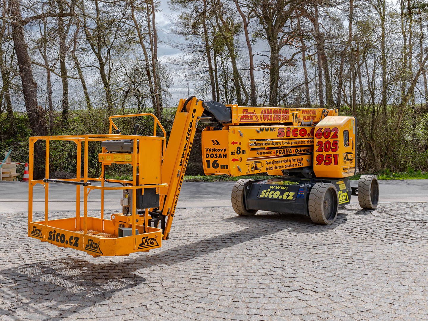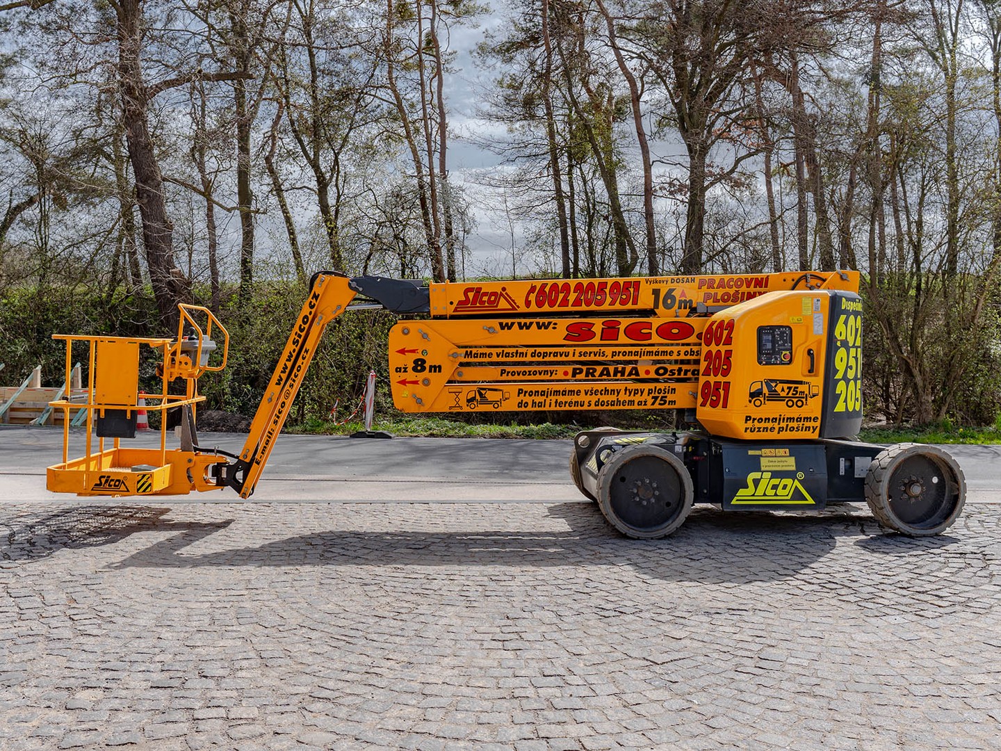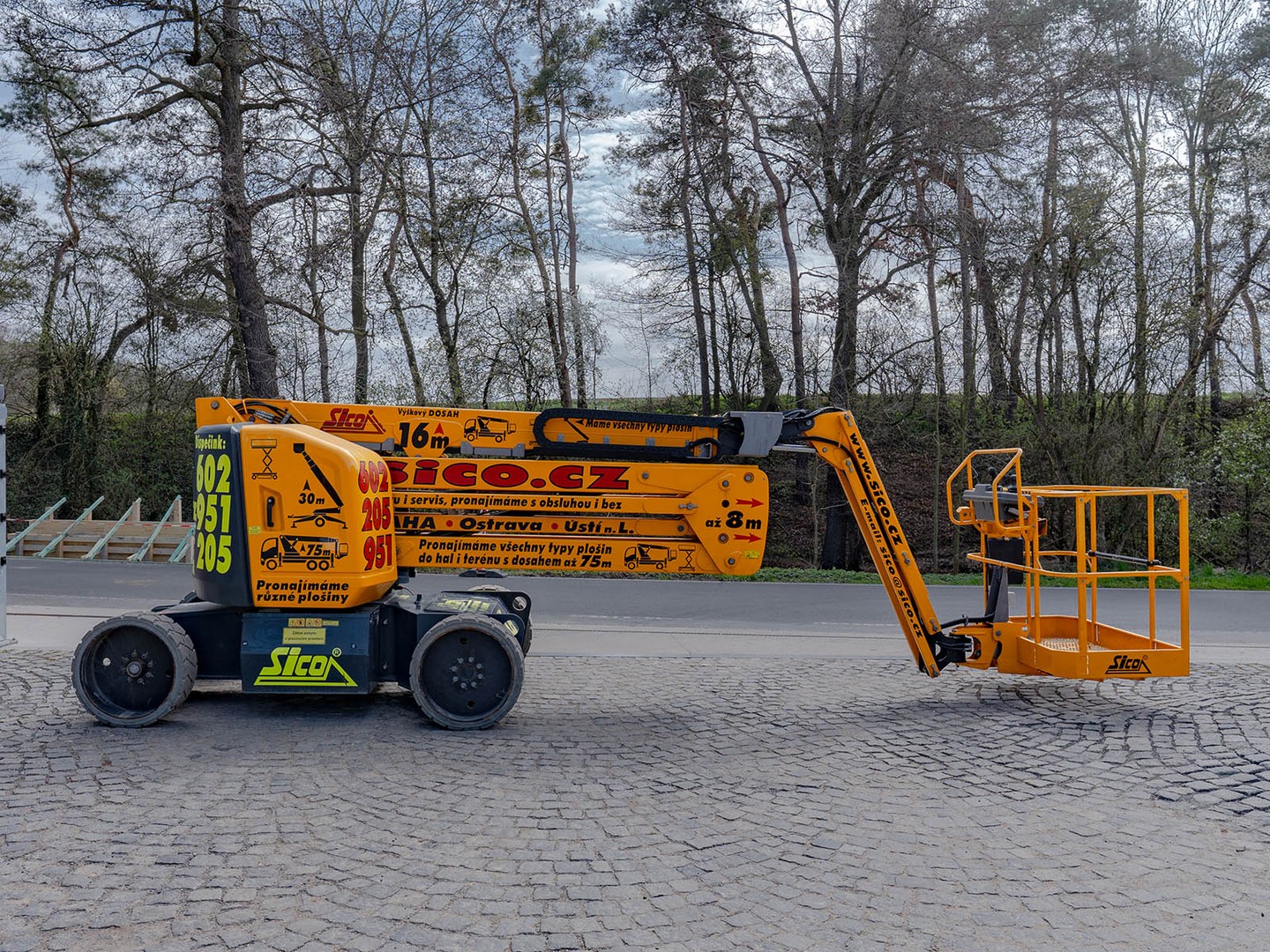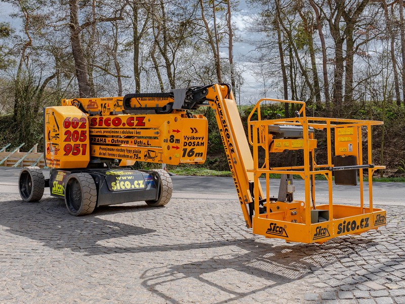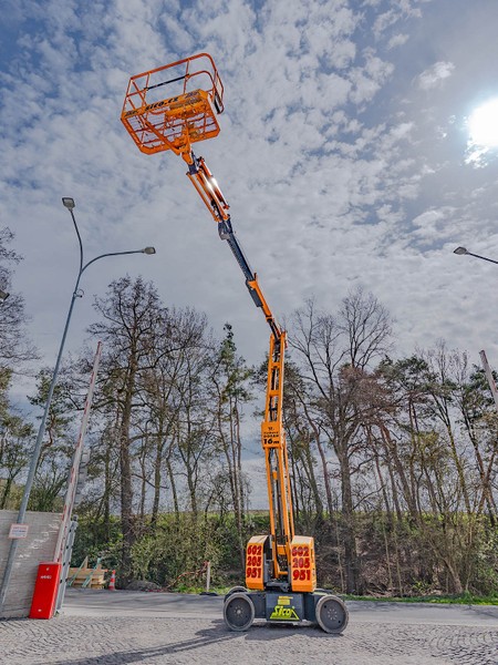 Akumulátorová kloubová pracovní plošina s pracovní výškou až 16,1 metrů. Pracovní koš s nosností 230 kg nese vertikálně pohyblivé JIB rameno.