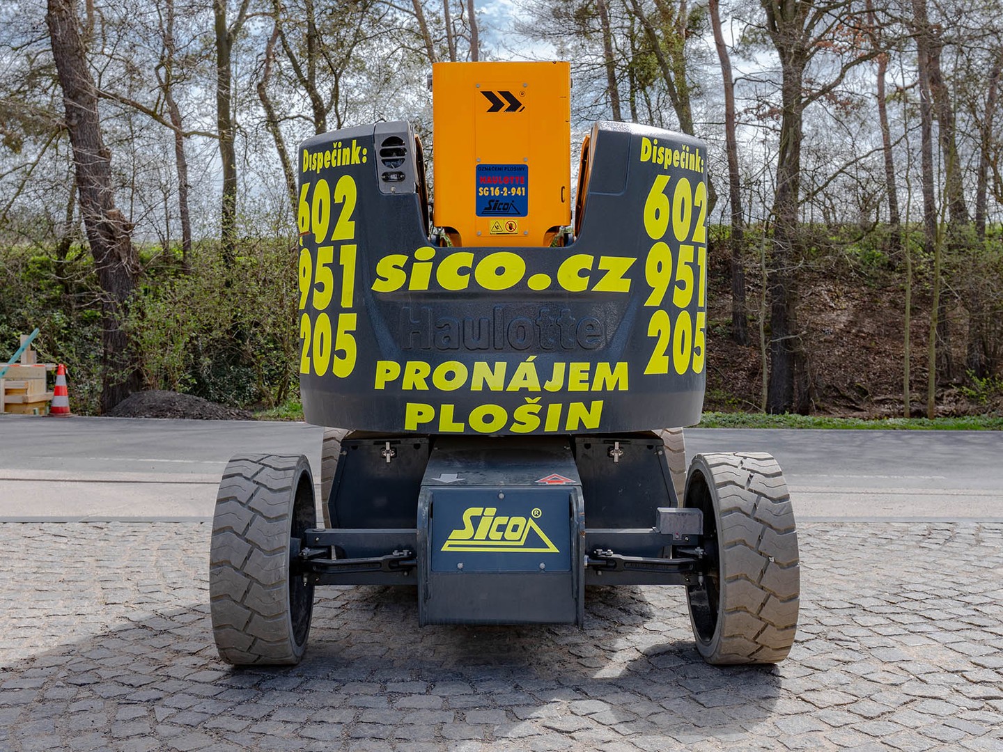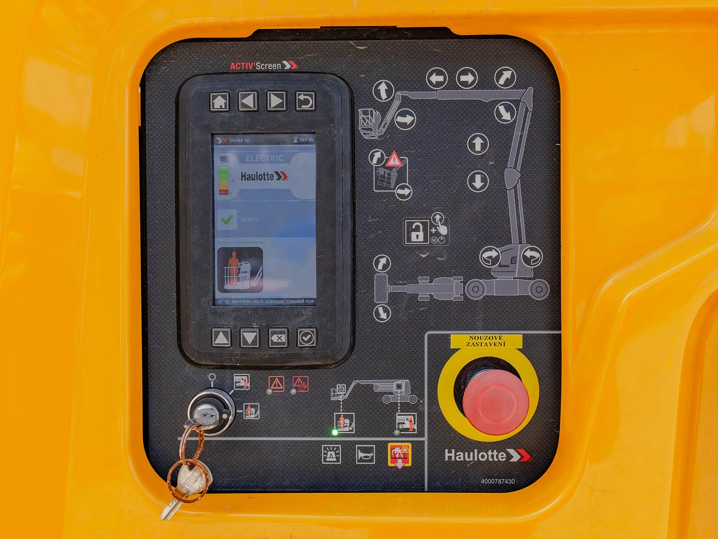 Haulotte SIGMA 16 se snadno ovládá, nulový přesah závaží a nízký radius otáčení zajistí perfektní manévrovatelnost i ve stísněných prostorech. Do obtížněji dostupných míst se dostanete díky kloubovo-teleskopické kontrukci a JIB ramenu, kterým lze vertikálně pohybovat. Dosah za překážku je 7,4 m. V pracovním koši je zásuvka (230 V).