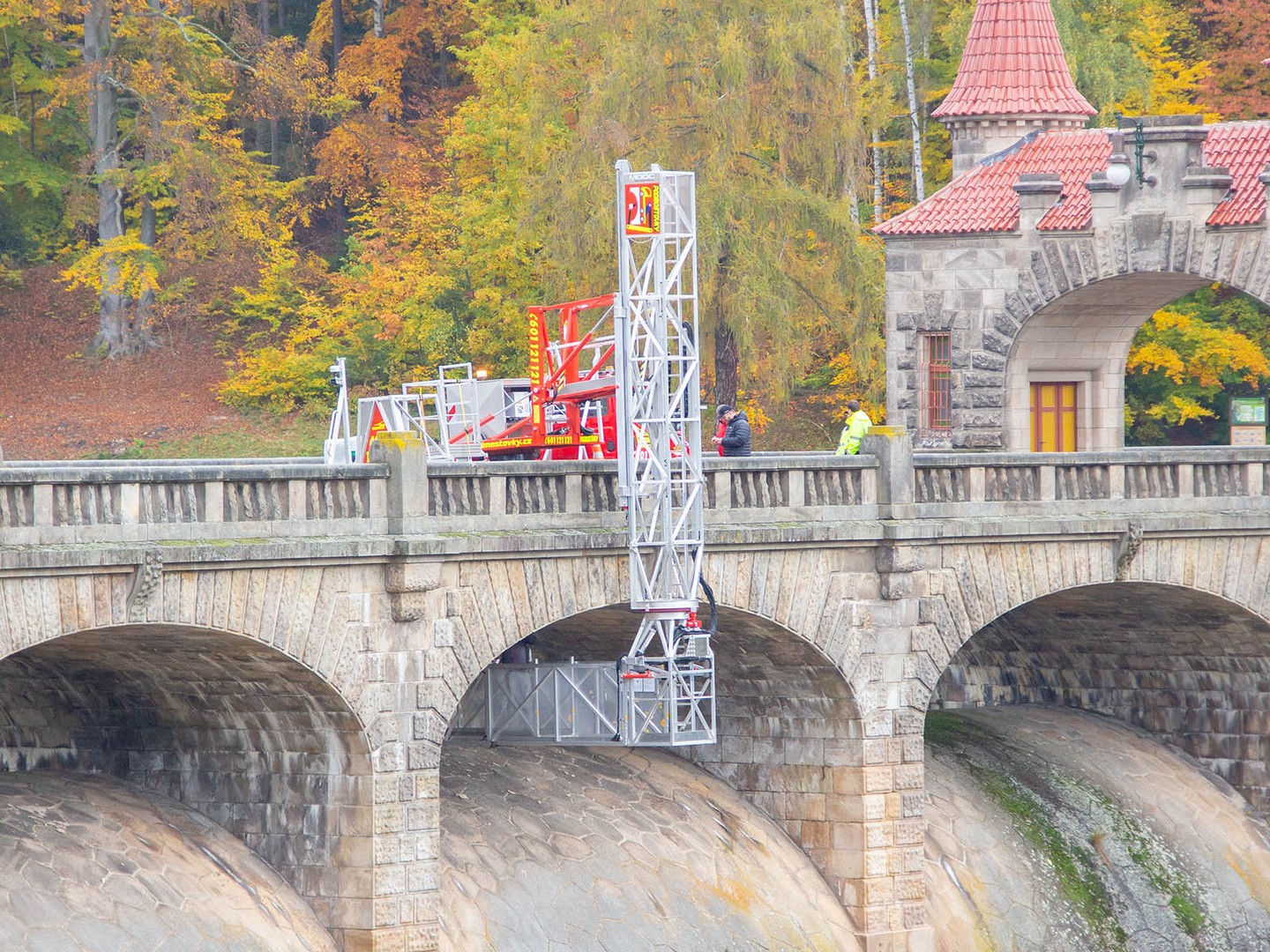 Kompaktní inspekční lávka MOOG MBI 70 pro diagnostické opravné práce. Dílka lávky až 7,5 m, hloubka spuštění až 5,8 m.