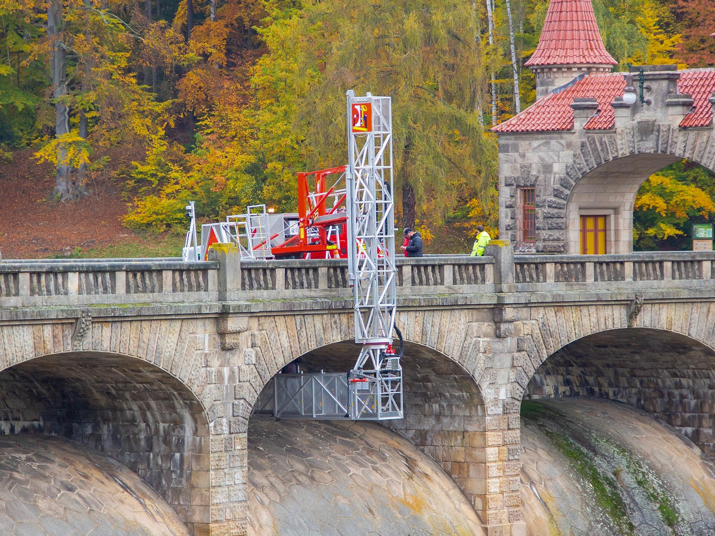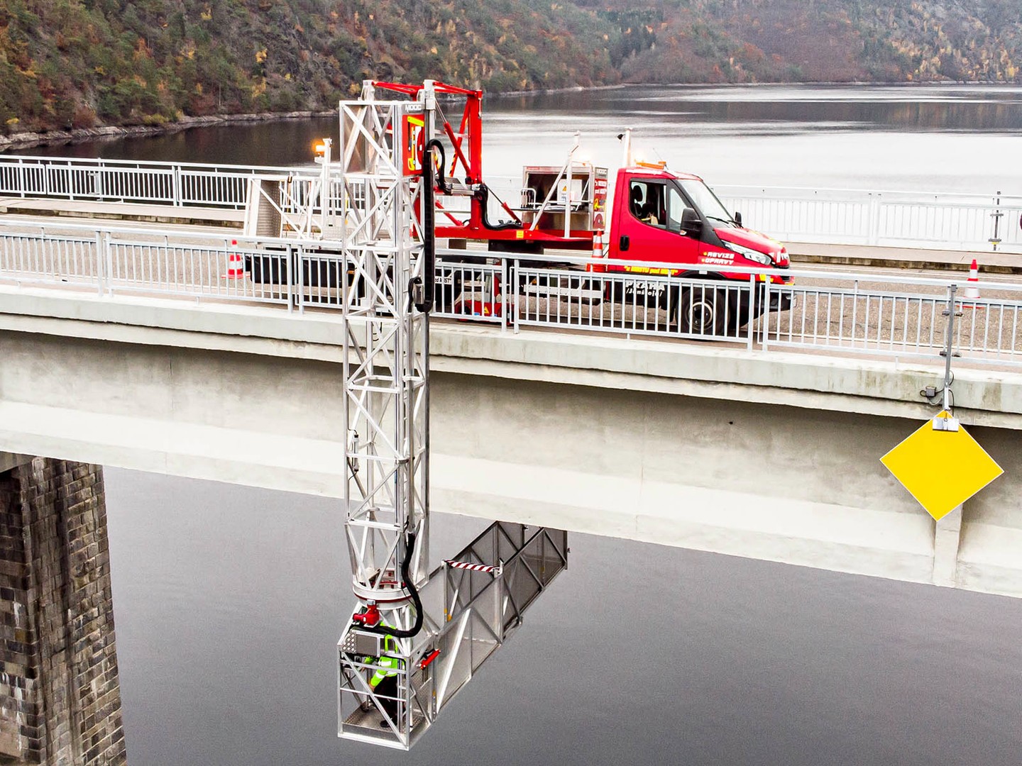Kompaktní inspekční lávka MOOG MBI 70 pro diagnostické opravné práce. Délka lávky až 7,5 m, hloubka spuštění až 5,8 m.