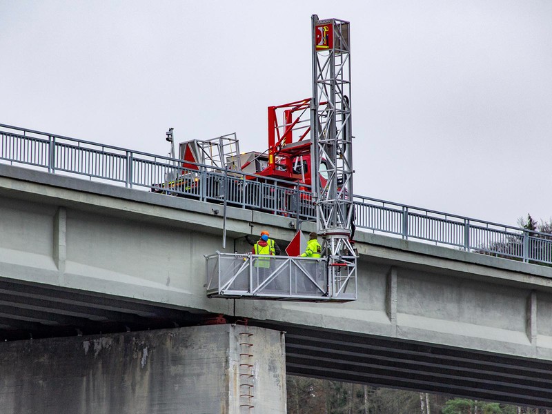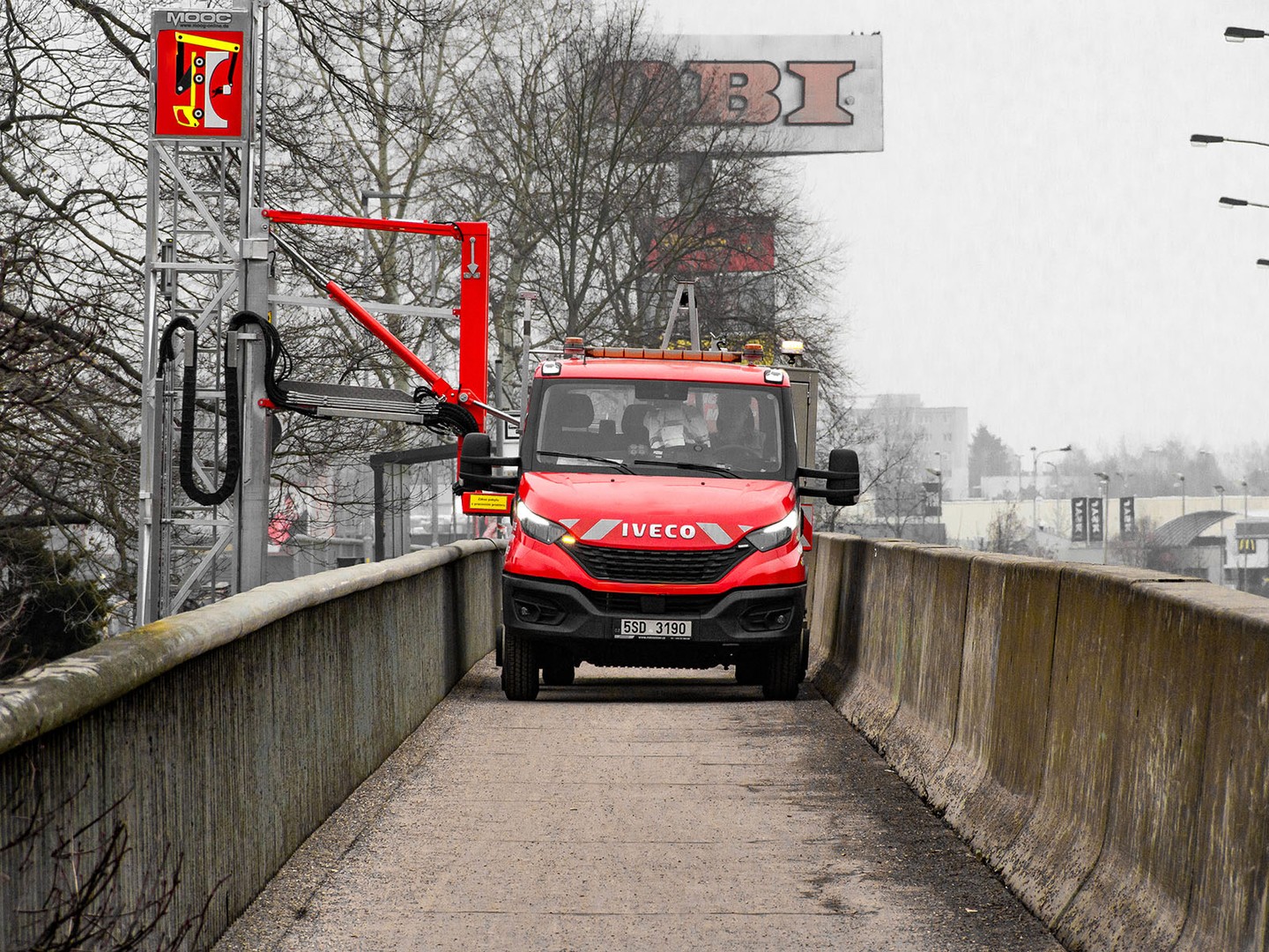 Mostní prohlížečka je umístěna na automobilovém podvozku IVECO DAILY. Inspekční lávka MOOG MBI 70-1/S umožňuje umístit hydropojezd na obě strany stroje, disponuje perfektními parametry nosnosti, dosahu lávky a hloubky spuštění. Kompaktní stroj oceníte na mostních konstrukcích, kde budete limitování rozměry a nosností. Stroj je vybaven generátorem elektrického proudu (napětí 230 V) pro připojení ručního nářadí. Technické řešení splňuje všechny bezpečnostní požadavky pro konstrukci a provoz vyhrazených zdvihacích zařízení.