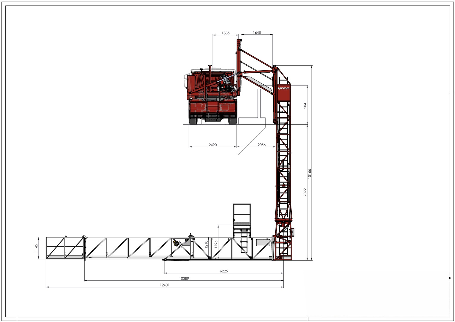 Mostní prohlížečka je vybavena jeřábem o nosnosti až 500 kilogramů pro snadnou nakládku materiálu, teleskopickým otočným rámem pro přemostění chodníku o šířce až 3,3 metru a také přídavným rozšířením, kterým lze snadno prodloužit délku lávky o 2 metry až na 12,39 metru. Spolu s dostatečnou hloubkou spuštění až 7,15 metru inspekční lávka zajistí pokrytí velkého prostoru pod mostem. Plynulý hydropojezd umožní pohyb po mostovce s lávkou v pracovní pozici, elektrocentrála zajistí elektrický proud (napětí 230V) pro použití ručního nářadí na lávce. Technické řešení splňuje všechny bezpečnostní požadavky pro konstrukci a provoz vyhrazených zdvihacích zařízení.