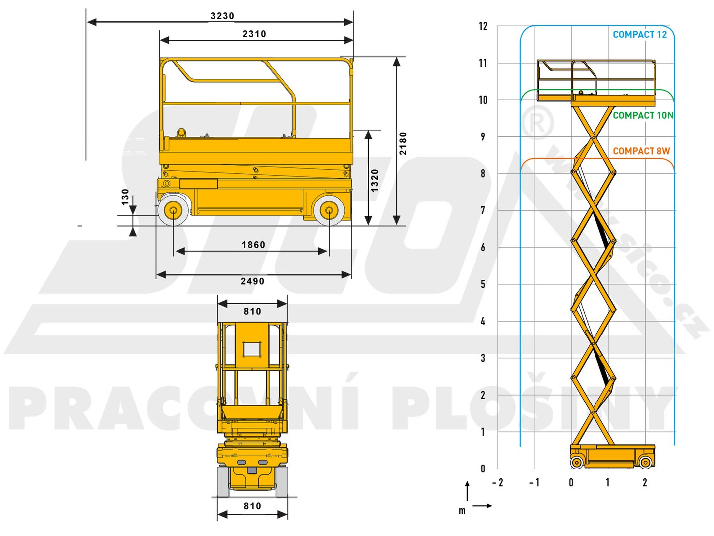 Speciál pro práce ve stísněných prostorech. Písmeno “N” v typovém označení pochází z anglického “narrow” - úzký, průjezdná šířka je pouhých 0,81 metru. Zmíněná šířka, vnější radius zatáčení s hodnotou pouze 2,38 metru a plně proporcionální ovládání stojí za perfektní manévrovatelností i ve stísněných prostorách. Haulotte Compact 10N v pracovním koši unese 230 kilogramů, sada akumulátorů zajistí až několik hodin bezemisního a tichého provozu. Pracovní výška 10 metrů je dostačující pro většinu interiérových prací. Plošina splňuje všechny přísné mezinárodní předpisy a normy. VYZVEDNU A VRÁTÍM - obecné podmínky a vysvětlení zde.Podmínky pronájmu, doporučení k používání, informace ke školení a výpis zakázané manipulace najdete zde.