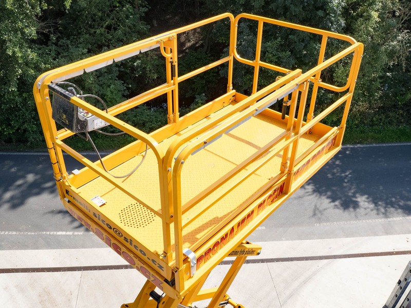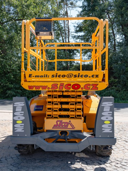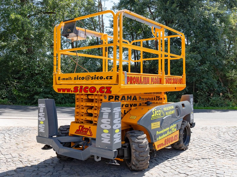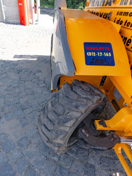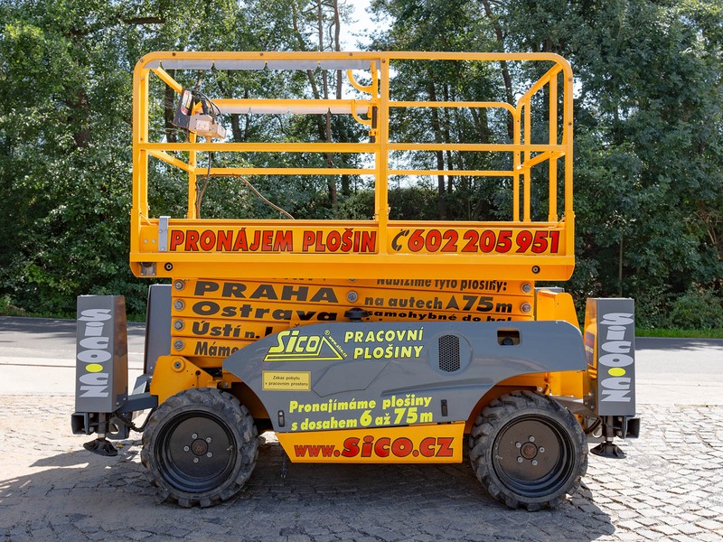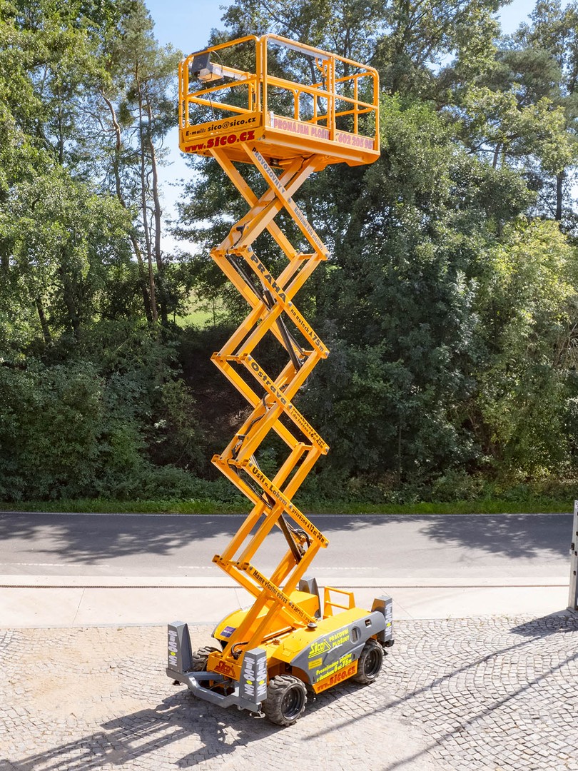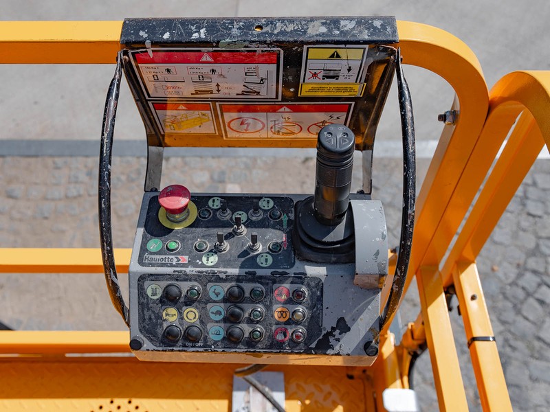 Dieselová nůžková plošina Haulotte pro práce v obtížném terénu. H 12 DX disponuje maximální pracovní výškou 12,06 metru a v koši unese 450 kilogramů.