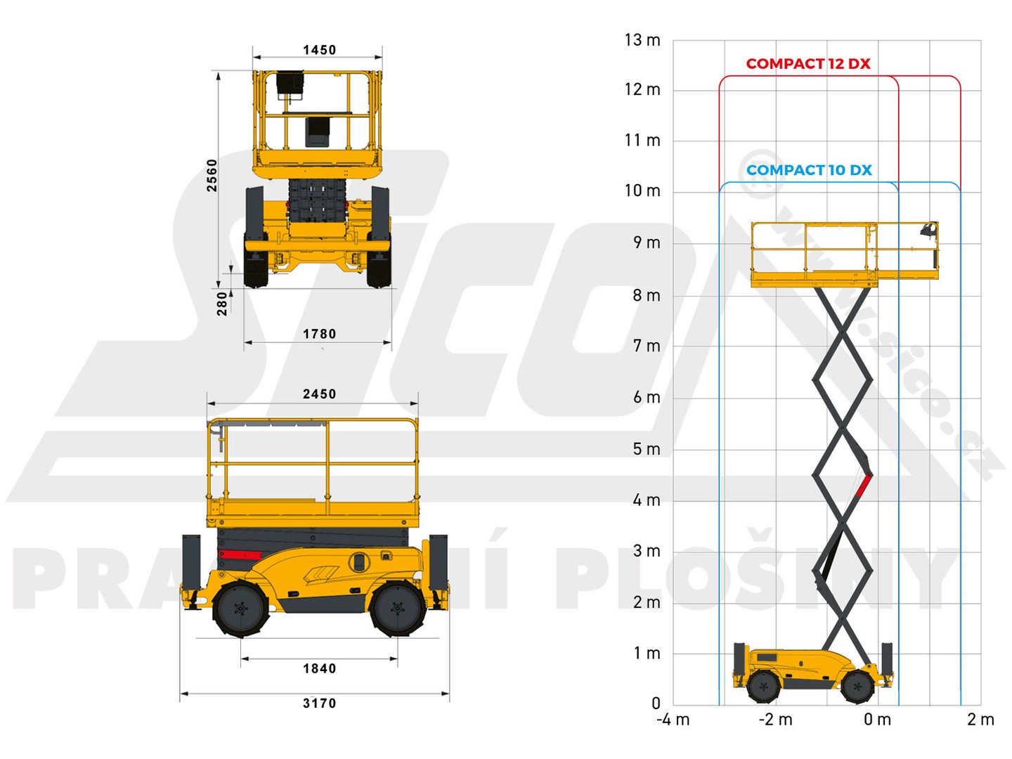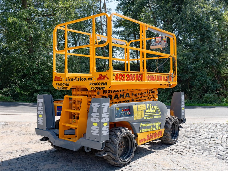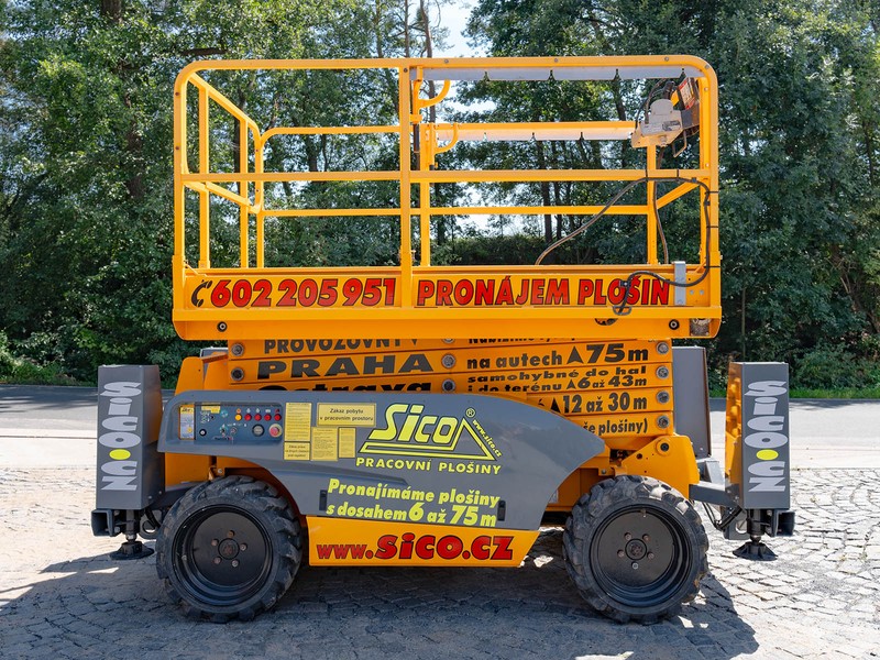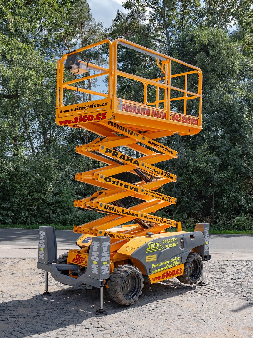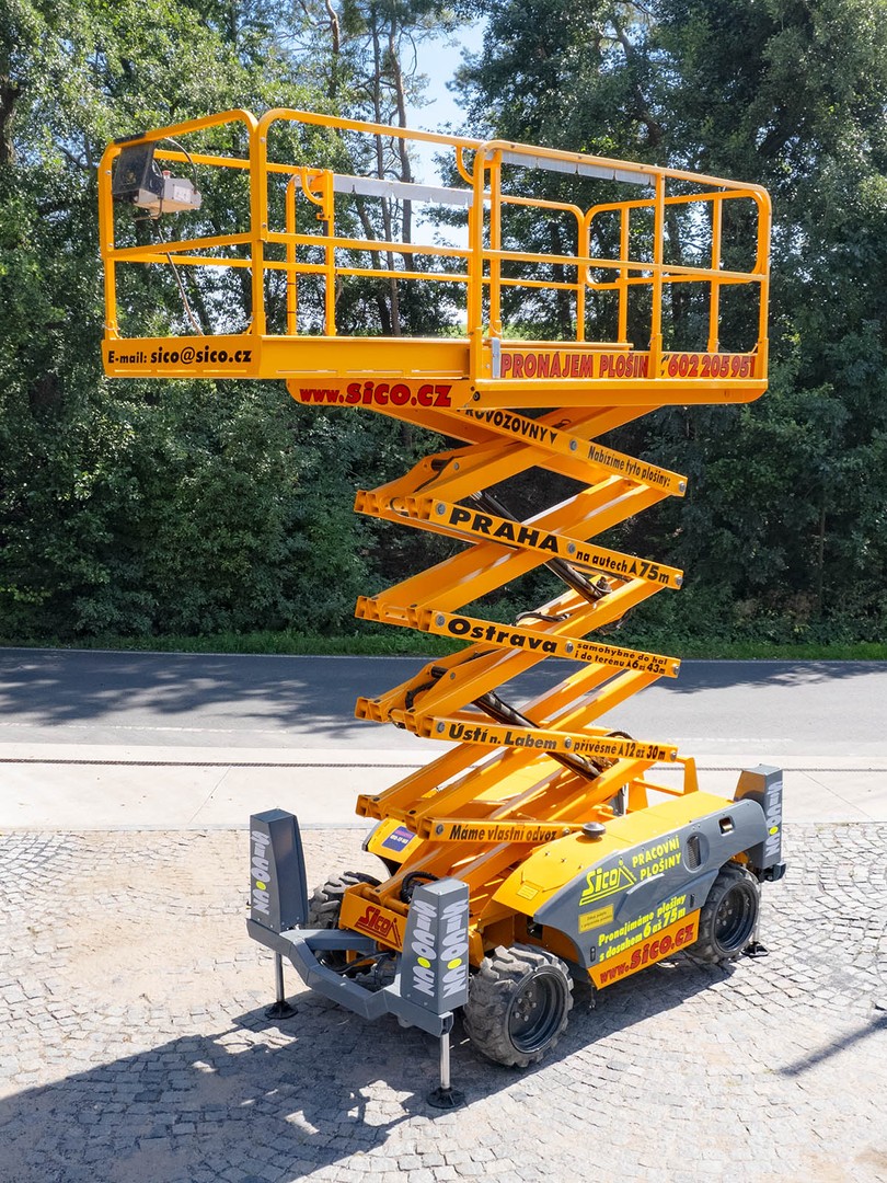 Dieselové nůžkové plošiny Haulotte jsou konstruovány pro práce v obtížném terénu. Nejinak je tomu u modelu Compact 12 DX II s maximální pracovní výškou 12,06 metru. Je vybavena pneumatikami s hrubým vzorkem, pohonem na obě nápravy a automatickým hydraulickým diferenciálem. Světlá výška 28 centimetrů umožní průjezd překážkami stavby. Pevné a bezpečné ustavení pro práci ve výšce zajistí 4 hydraulické opěry. Pracovní koš unese 450 kilogramů a je možné ho zvětšit na rozměr až 3,7 metru na 1,54 metru. Vnější radius otáčení pouhých 3,5 metru a jemné proporcionální ovládání zajistí perfektní manévrovatelnost. Stroj je možné zdvihnout jeřábem a je také vybavený tažnými oky. Compact 12 DX II splňuje všechny přísné mezinárodní bezpečnostní normy a předpisy. Podmínky pronájmu, doporučení k používání, informace ke školení a výpis zakázané manipulace najdete zde.