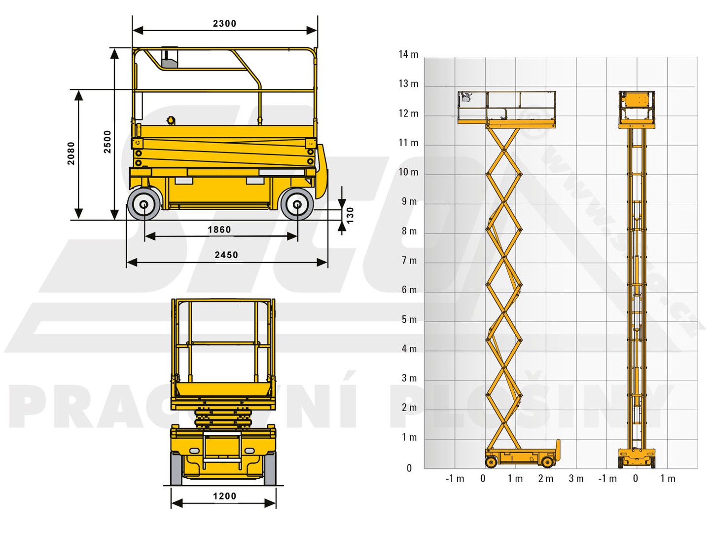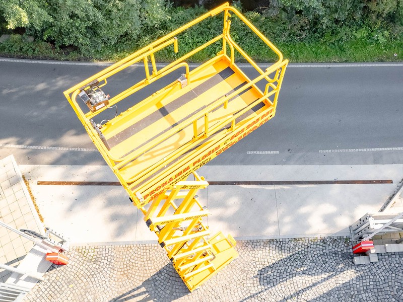 Nůžkové plošině Compact 14 stačí rovný a zpevněný povrch a je připravena na nejrůznější montážní, stavební, rekonstrukční či jiné práce do výšky až 13,8 metrů.