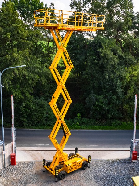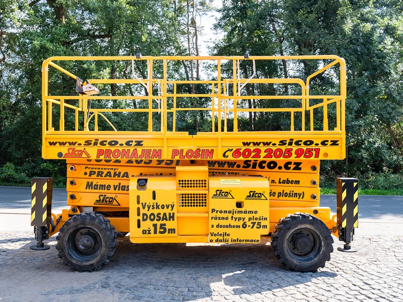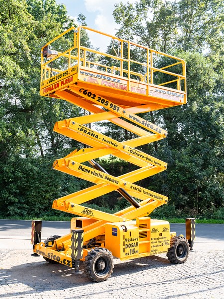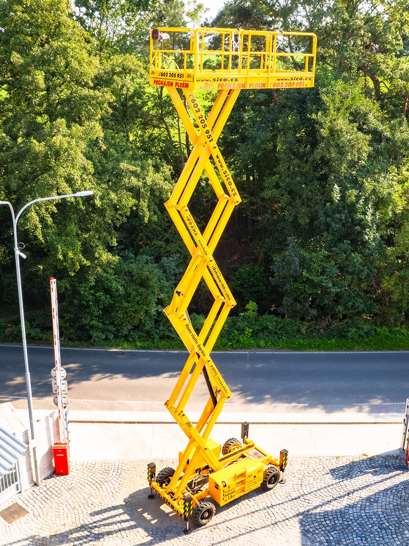 Dieselové nůžkové plošiny Haulotte jsou konstruovány pro práce v obtížném terénu. Nejinak je tomu u modelu H 15 SX s maximální pracovní výškou 15 metrů a s nosností koše 500 kilogramů.