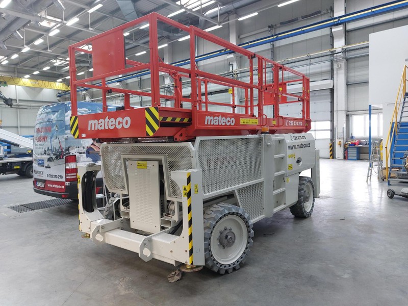 Výkonná samohybná nůžková plošina s elektrickým pohonem do terénu určená pro bezpečnou a efektivní práci ve výškách až 15 metrů. Nabízí pohon všech kol 4×4, výkyvnou nápravu a hydraulické podpěry s automatickým ustavením, které zajišťují stabilitu i na nerovném povrchu.