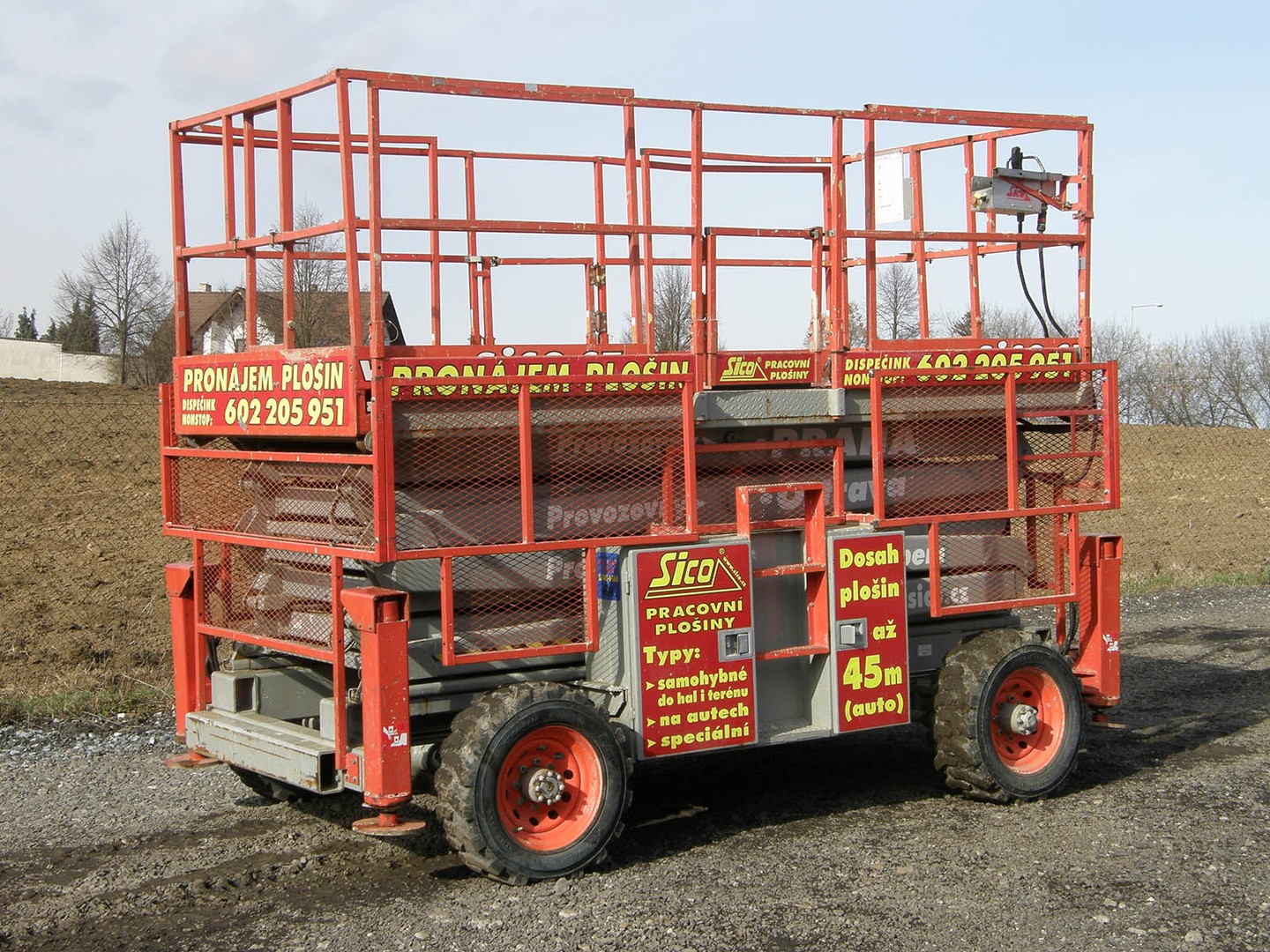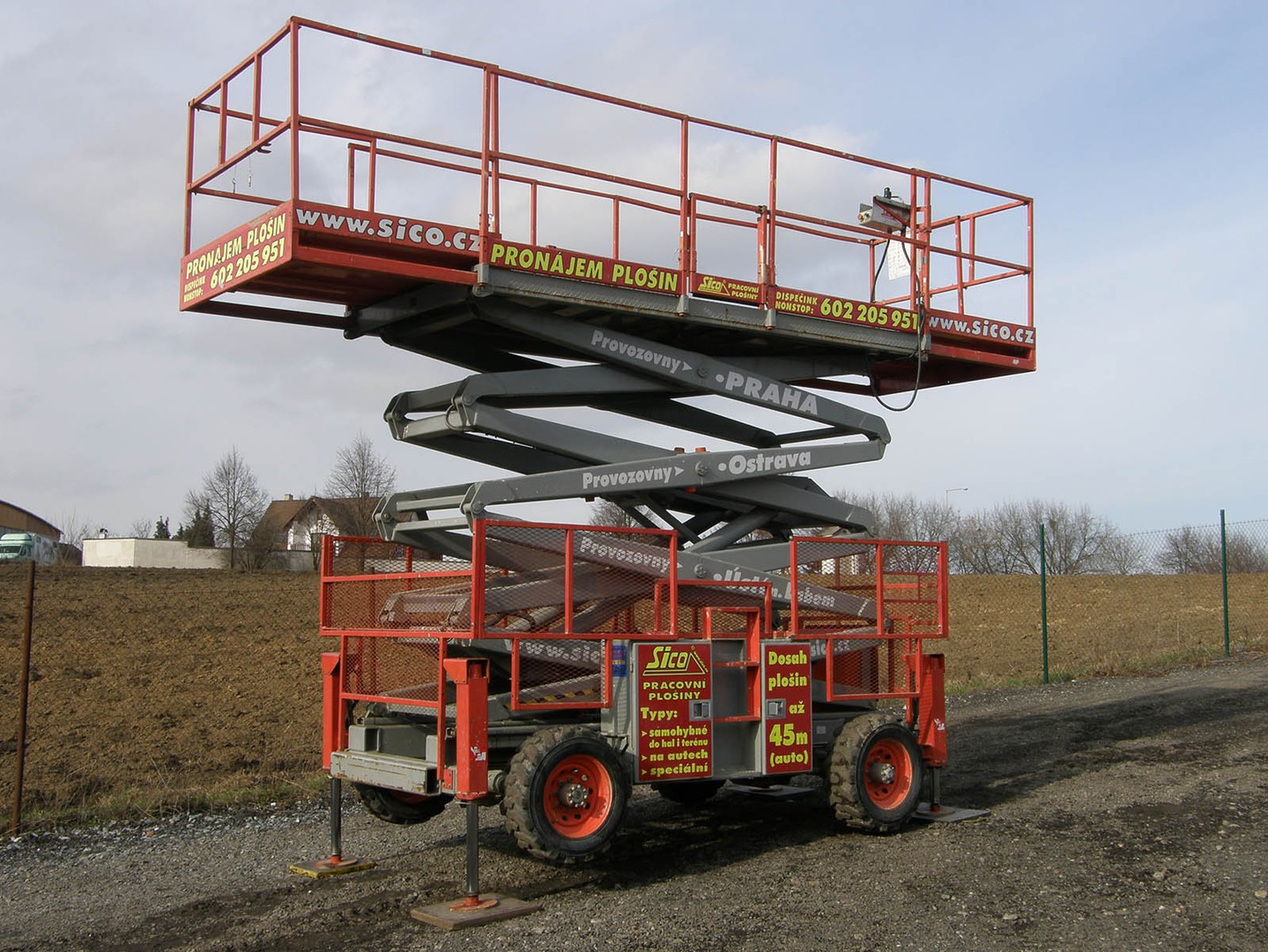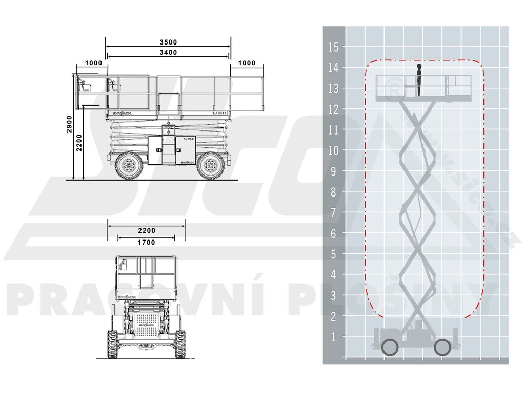 Samohybná nůžková pracovní plošina SJ 145 kanadské firmy SKYJACK, jejíž plošiny jsou využívány ve všech oborech průmyslu po celém světě, je vhodným zařízením na výškové práce na nerovných terénech. Stabilitu plošiny zajišťují hydraulické podpěry, které vyrovnávají nerovnosti v terénu. Pohon na všechna čtyři kola, uzávěrka diferenciálu a pneumatiky naplněné polyuretanovou pěnou zaručují bezpečnost v každém prostředí. Velký pracovní koš s nosností 681 kg poskytuje možnost současné práce několika pracovníků zároveň. Maximální pracovní dosah montéra je 14,5 metrů. Hydraulický systém zdvihu a pojezdu plošiny je poháněn dieselovým motorem. Pracovní plošina SJ145 splňuje přísné bezpečností předpisy a mezinárodní normy. Podmínky pronájmu, doporučení k používání, informace ke školení a výpis zakázané manipulace najdete zde.