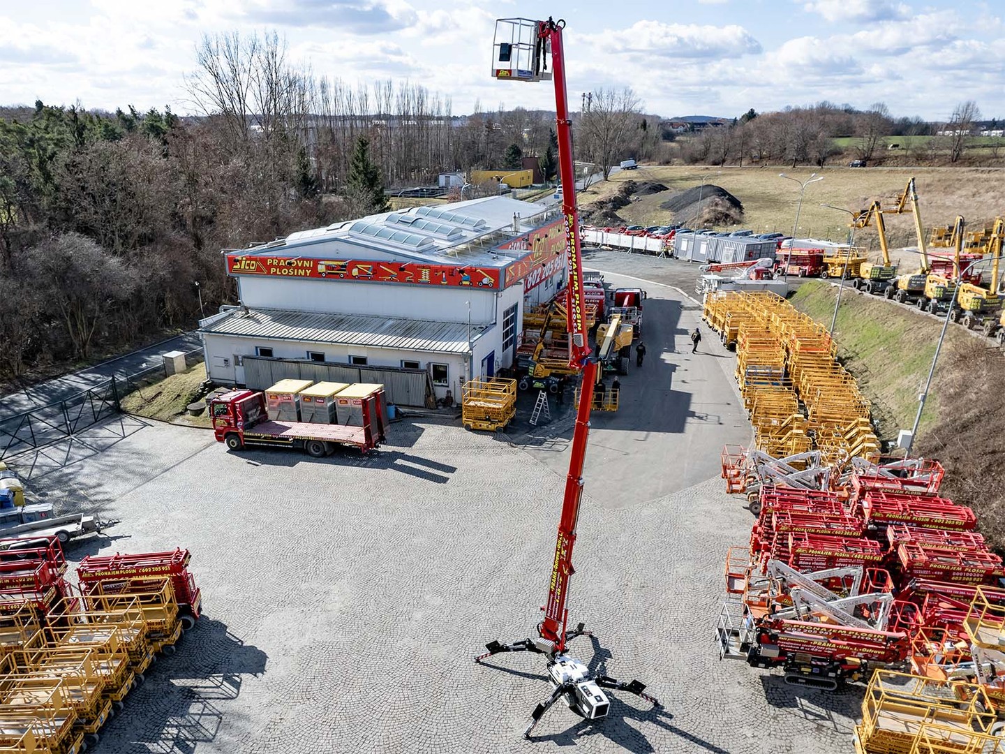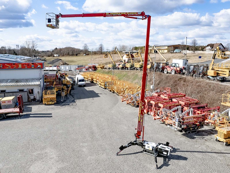 Naše speciálka DT25 SPYDER byla vytvořena pro vnitřní i vnější práce na velkých halách. Má pásový pojezd a ovládat se dá i dálkově!