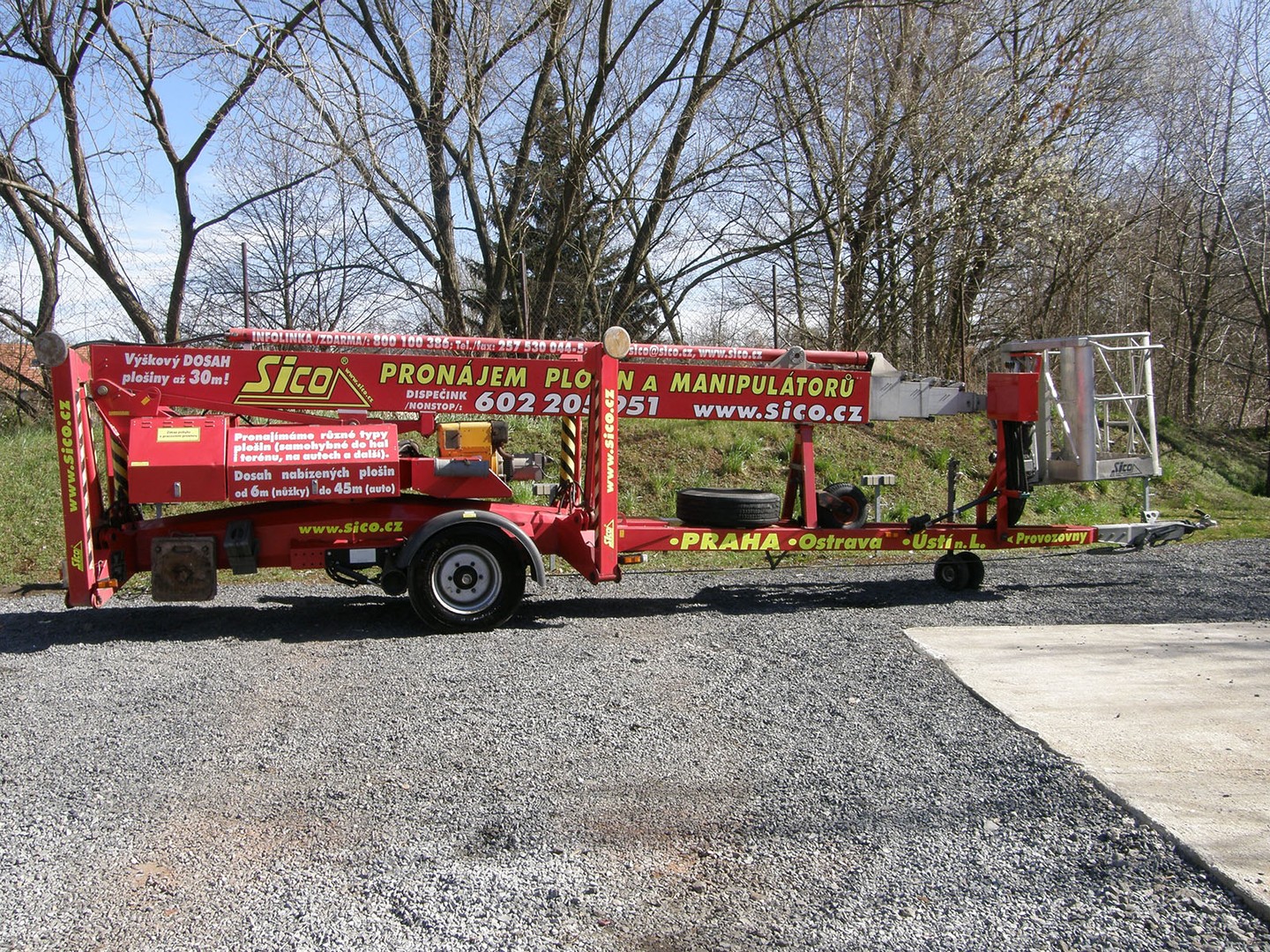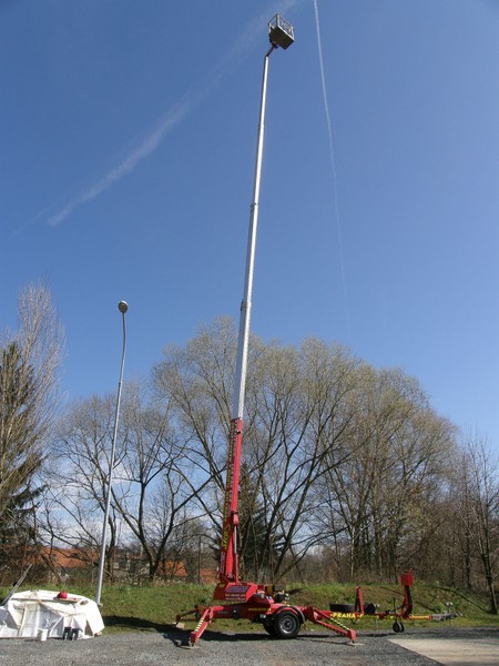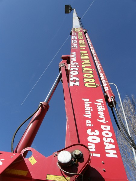 DL 30 je naše nejvyšší přívěsná plošina, teleskopický výložník vás dostane do výšky až 30 metrů. Ustavený stroj zabere plochu menší než 4,5m x 4,5m.