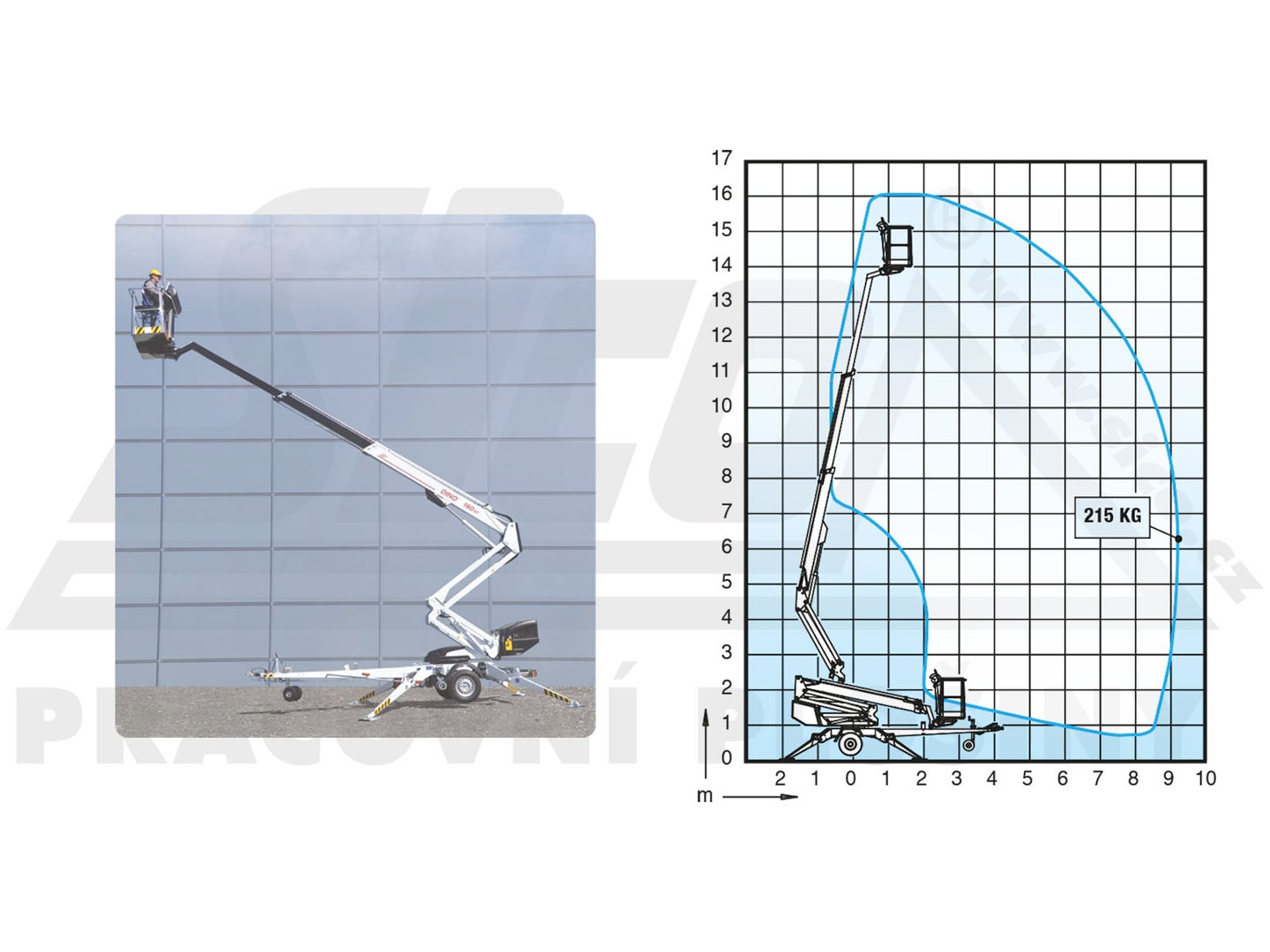 Díky kloubovo-teleskopické konstrukci, nekonečné otoči a koši s možností rotace o 90° stroj pokrývá rozsáhlou pracovní plochu. Stabilitu zajišťují 4 nezávisle ovládané podpěry. Plošina disponuje vlastním pojezdem a novější verze i komfortním ovládáním této funkce prostřednictvím odnímatelného ovladače. Díky zmíněné nízké hmotnosti jsou přívěsné plošiny vhodné pro rychlý a jednoduchý transport. O pohon se postará benzínový agregát, pro použití především v interiérech je možný provoz i na 230V. Bezpečnost pracovníka jistí propracovaný systém dvojnásobného jištění, hydraulických zámků a přepouštěcích ventilů.