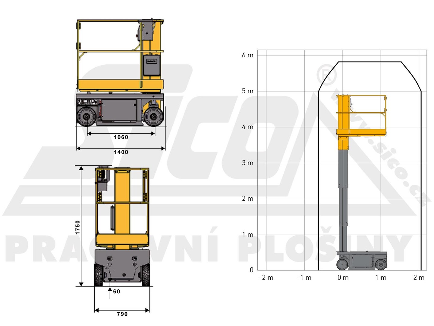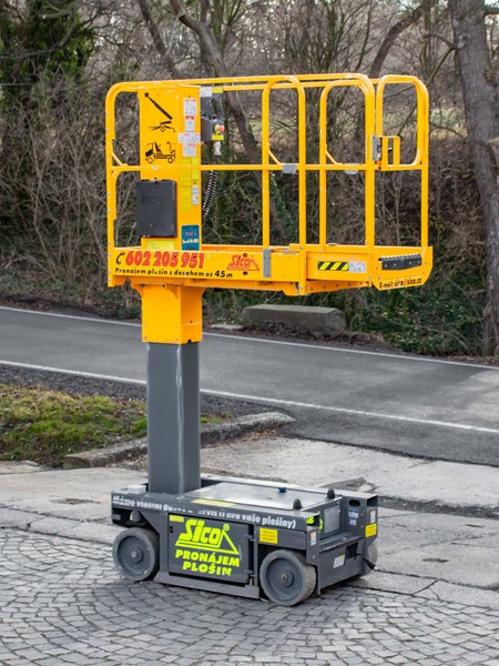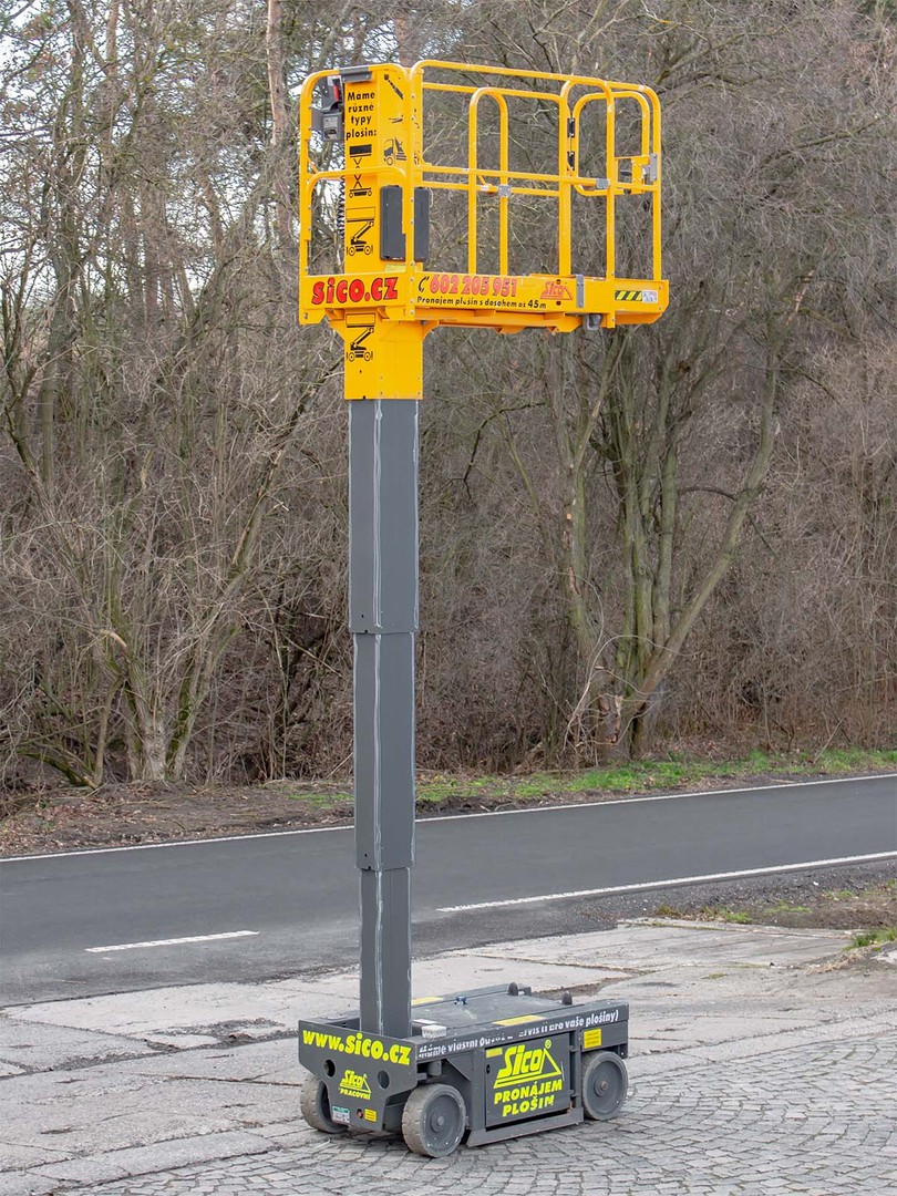Nejmenší zástupce kategorie sloupových plošin s pracovním dosahem až 6 metrů. Užitečný pomocník a za velmi příznivou cenu!