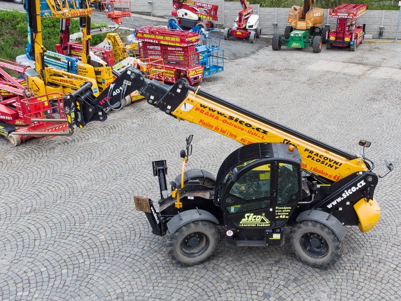 Do maximální výšky 16,7 metru vyzvedne náklad o hmotnosti až 2 tuny a ramenem dosáhne do vzdálenosti 12,85 metru. Haulotte HTL 4017 zvládá 3 pohyby najednou a to plně proporcionálně ovládané. Kabina manipulátoru je pevná a bezpečná a elektronika neustále hlídá povolené zatížení. Vyrovnání náklonu je funkční v intervalu +- 10°. Je to parťák pro obtížné práce, na kterého se můžete opravdu spolehnout.