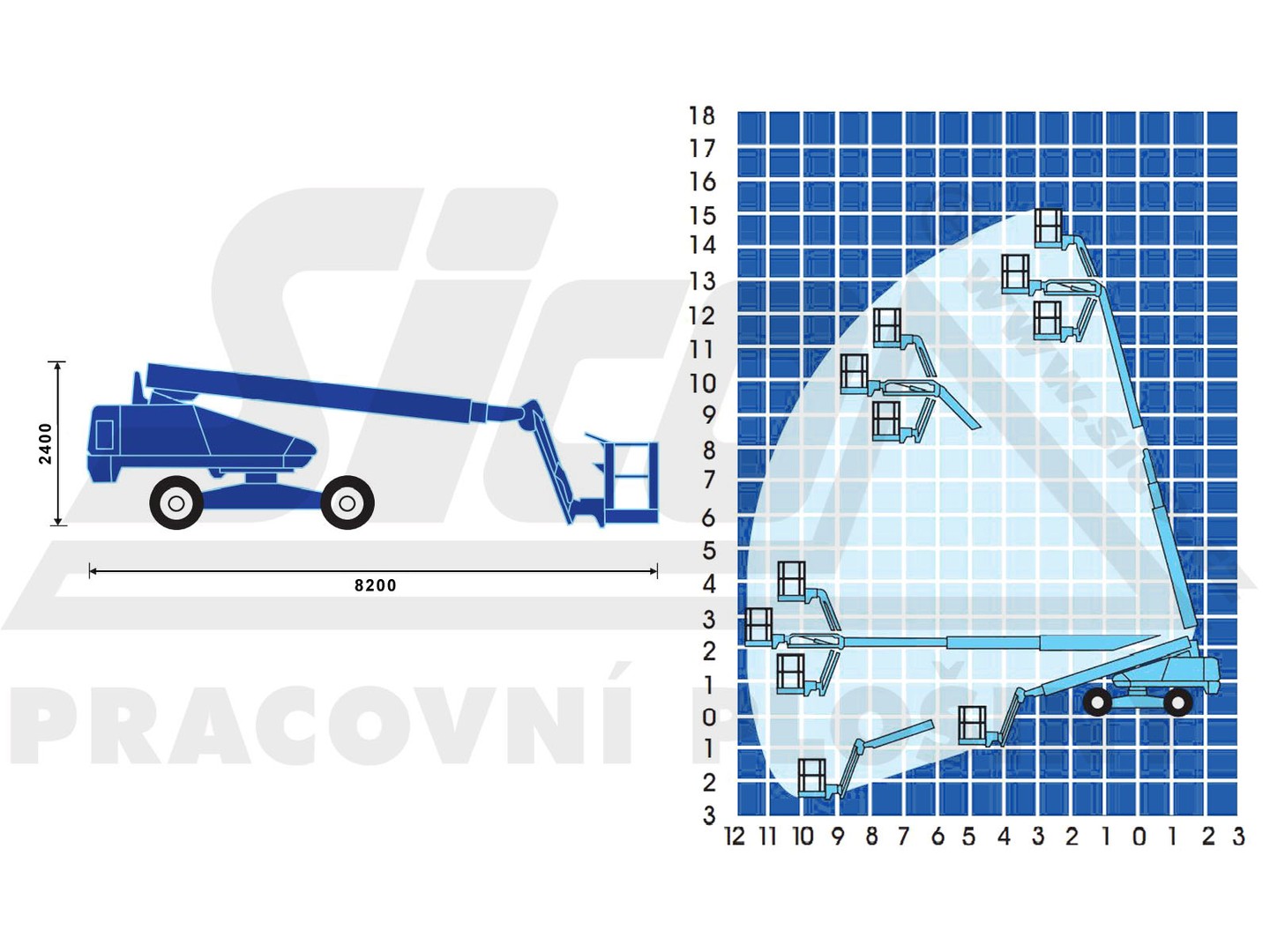 Speciálně vybavená dieselová teleskopická plošina pro práci v obtížných podmínkách ve výšce až 16,2 metru. To je SB 47 JRT.