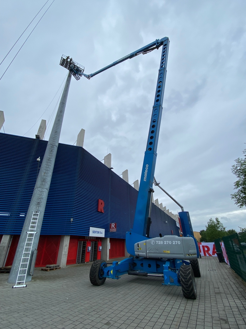Díky kombinaci těchto dvou výkonných strojů bylo možné realizovat veškeré údržbové úkony rychle a bezpečně. Projekt v Plzni je krásnou ukázkou toho, jak pronájem pracovních plošin dokáže výrazně usnadnit a zefektivnit realizaci výškových prací, a to i v náročném sportovním areálu.
