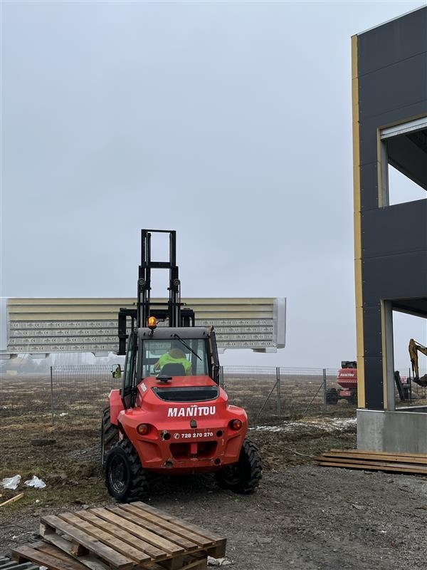 Tato kombinace plošin nám umožnila provádět různé fáze výstavby současně – od manipulace s materiálem až po montáž ocelových konstrukcí ve výškách. Terénní vysokozdvižný vozík Magni M30-4T zajistil dlouhý dosah a stabilní výkon i v náročném terénu, zatímco nůžková pracovní plošina Genie GS-5390 RT poskytla vysokou nosnost a dostatek prostoru pro bezpečný pohyb pracovníků i vybavení.
