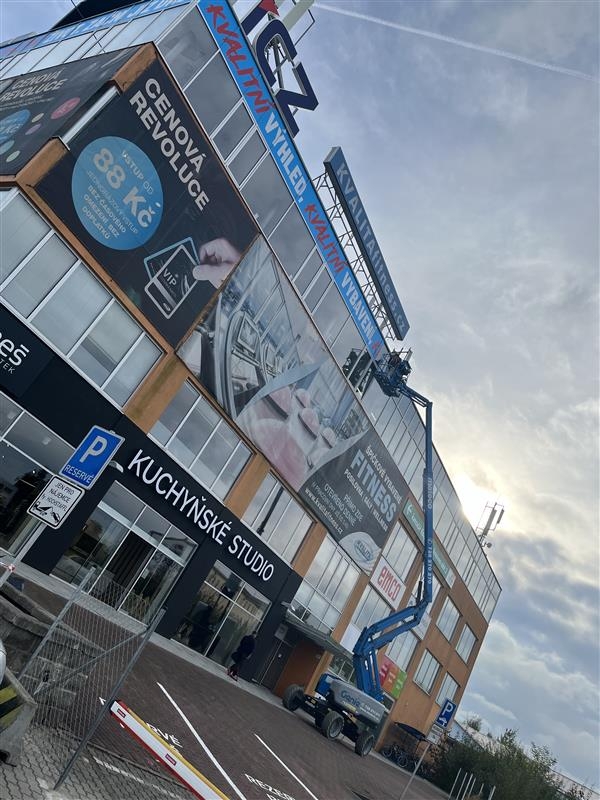 Výměna polepu reklamy u Výstaviště České Budějovice byla náročným projektem, který si vyžádal použití vhodné pracovní plošiny. Pro tento úkol byla zvolena teleskopická plošina S 65 XC, která poskytla bezpečné a efektivní řešení pro výměnu reklamního polepu na vysokých plochách budovy.