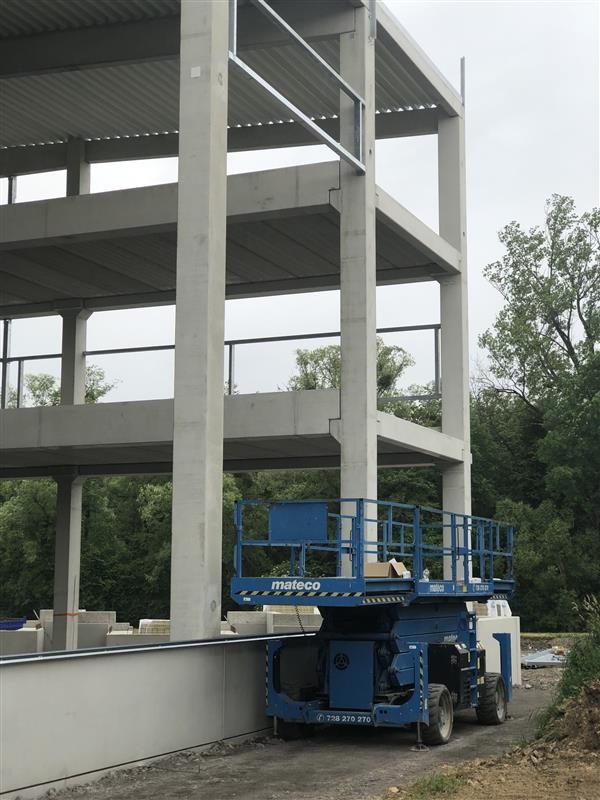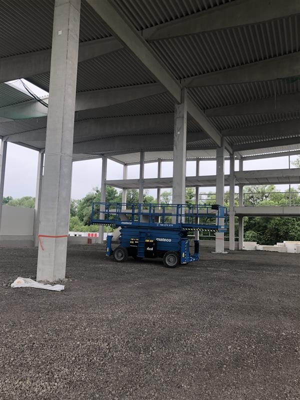 Tyto nůžkové pracovní plošiny Genie GS-5390 RT se osvědčily díky své vysoké nosnosti, široké pracovní ploše a schopnosti stabilního provozu i v náročnějších terénních podmínkách. Stroje poskytly ideální řešení pro bezpečné provádění montážních a dokončovacích činností na objektu.